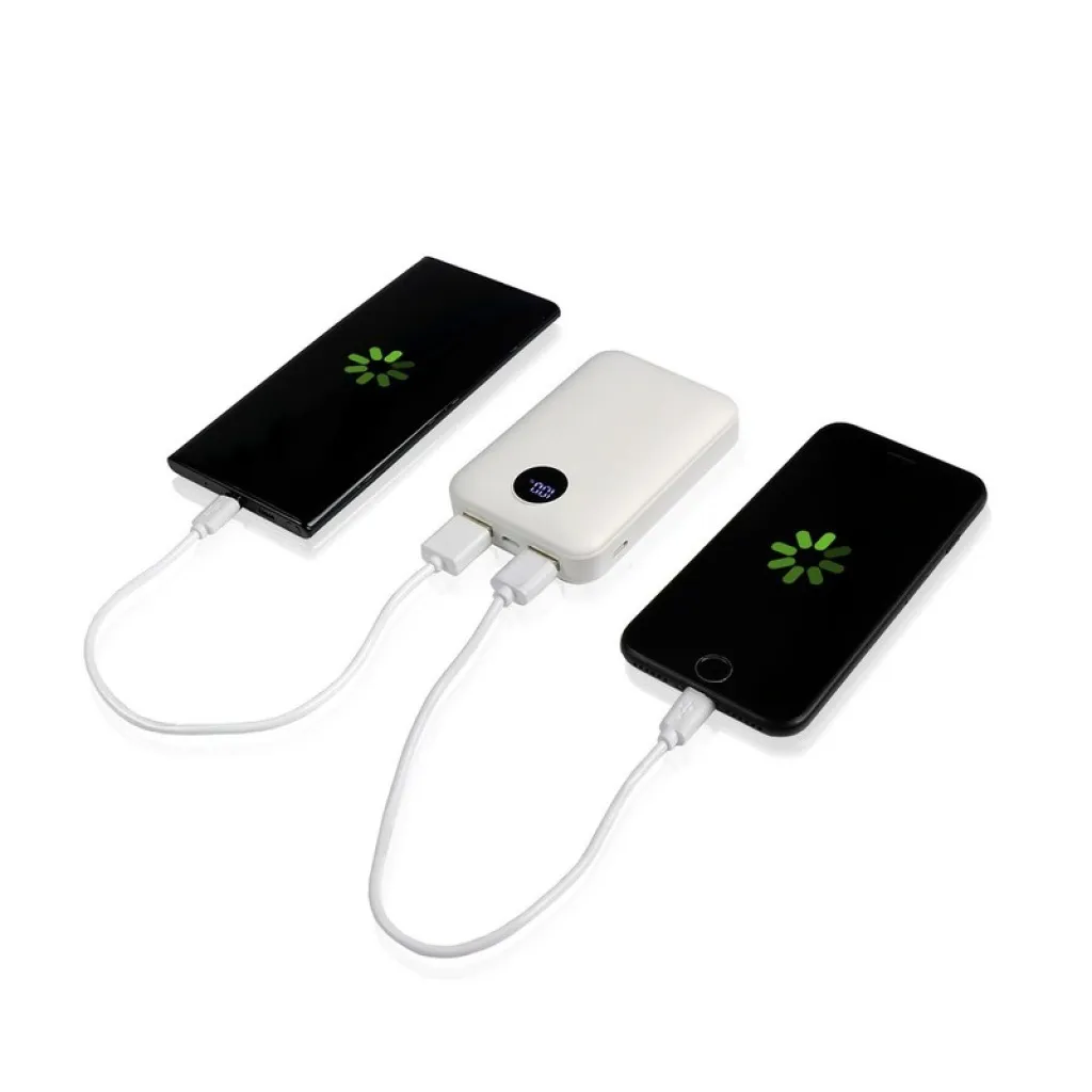 Air Gifts prijenosna baterija (powerbank) od 10 000 mAh, džepna veličina, digitalni prikaz razine snage, ulaz 5V/2A: USB tip C i mikro USB , 2 USB izlaza (maks. 5V/2A), može puniti dva mobilna uređaja istovremeno, USB tip C kabel i torbica od filca s karabinerom uključeni.