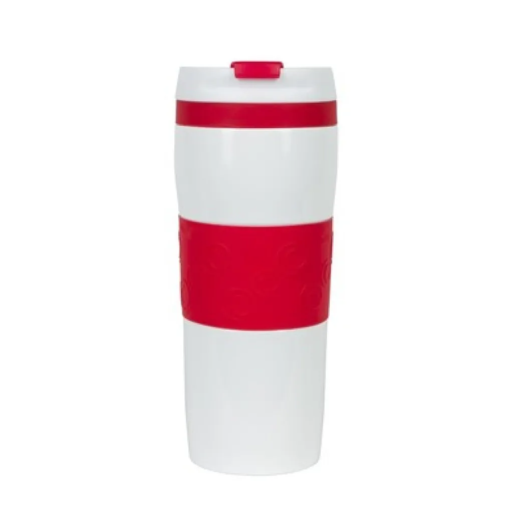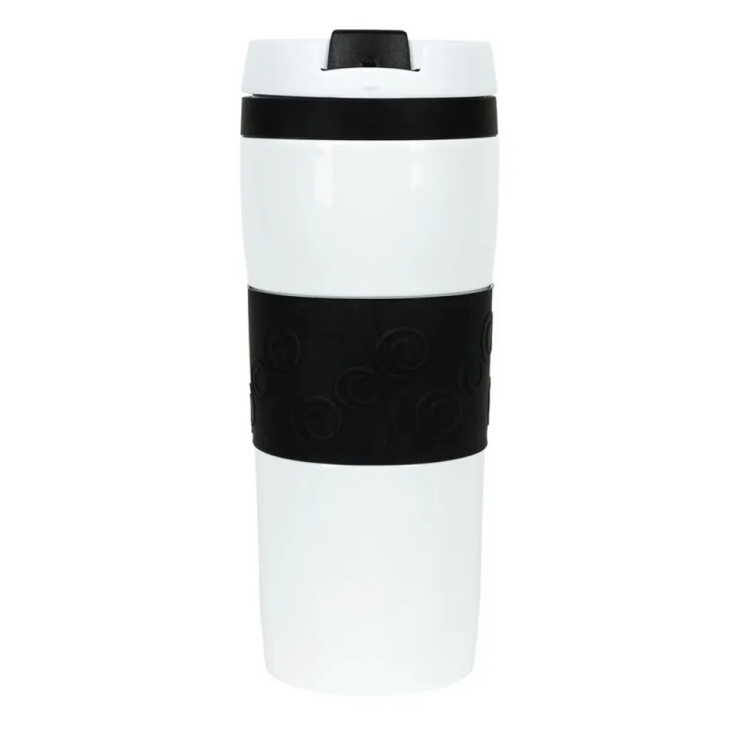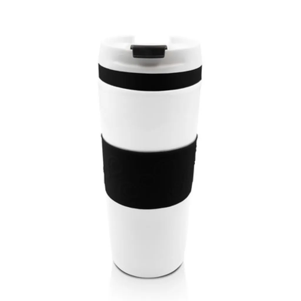Air Gifts termo šalica od 360 ml, sa silikonskim prstenom u boji, bakrenom vakuumskom izolacijom i dvostrukom vakuumskom stijenkom.
