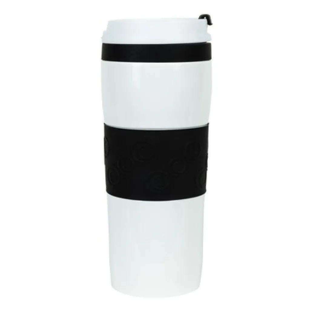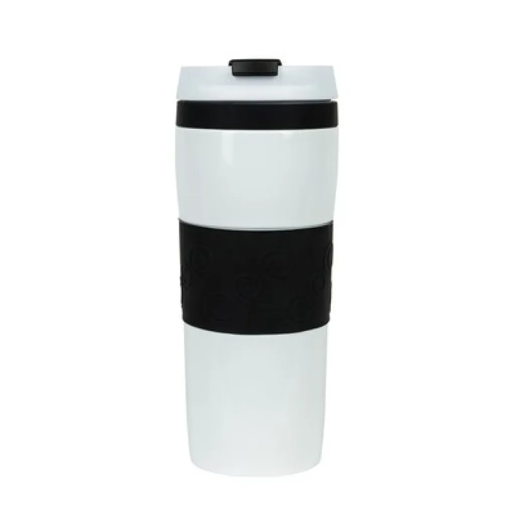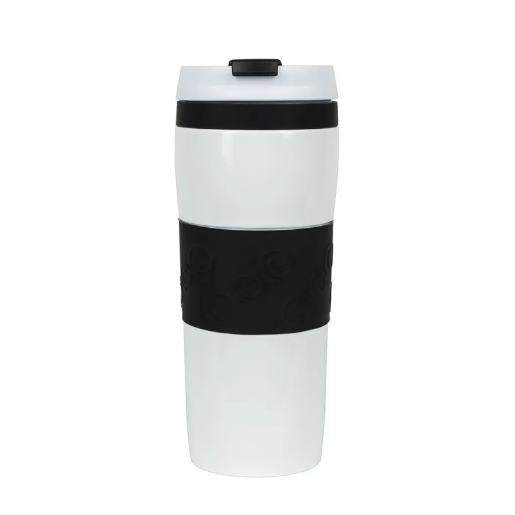 Air Gifts termo šalica od 360 ml, sa silikonskim prstenom u boji, bakrenom vakuumskom izolacijom i dvostrukom vakuumskom stijenkom.