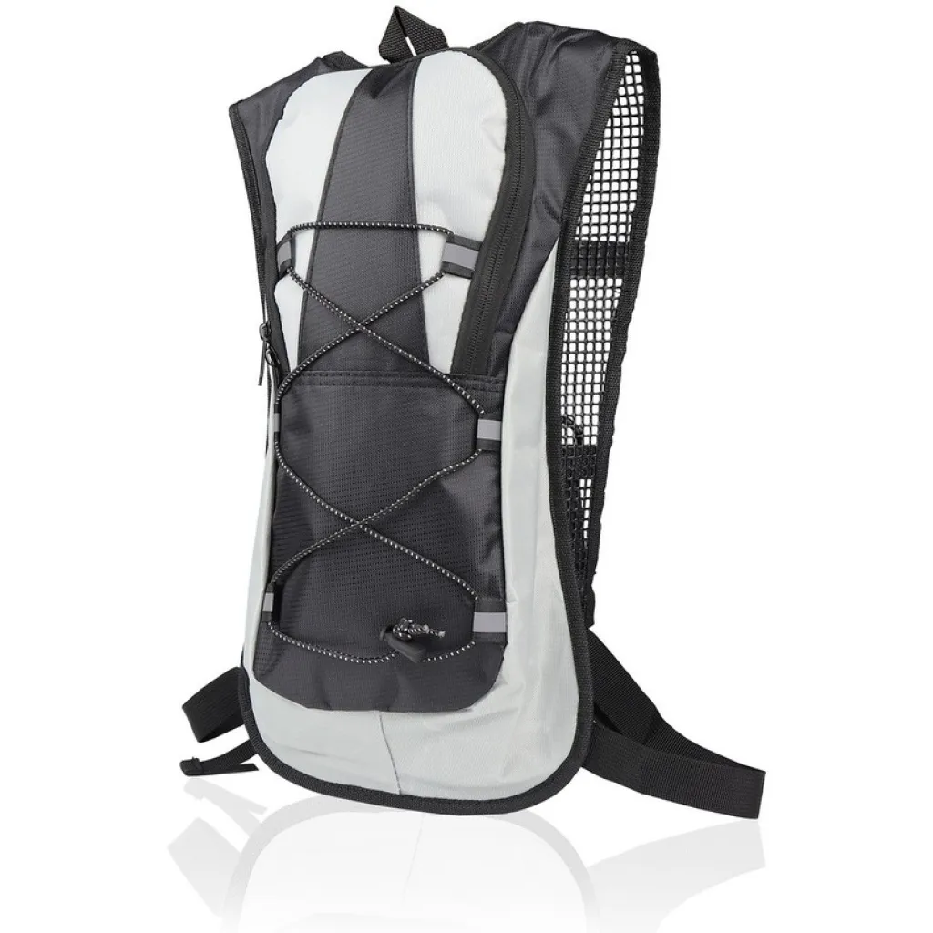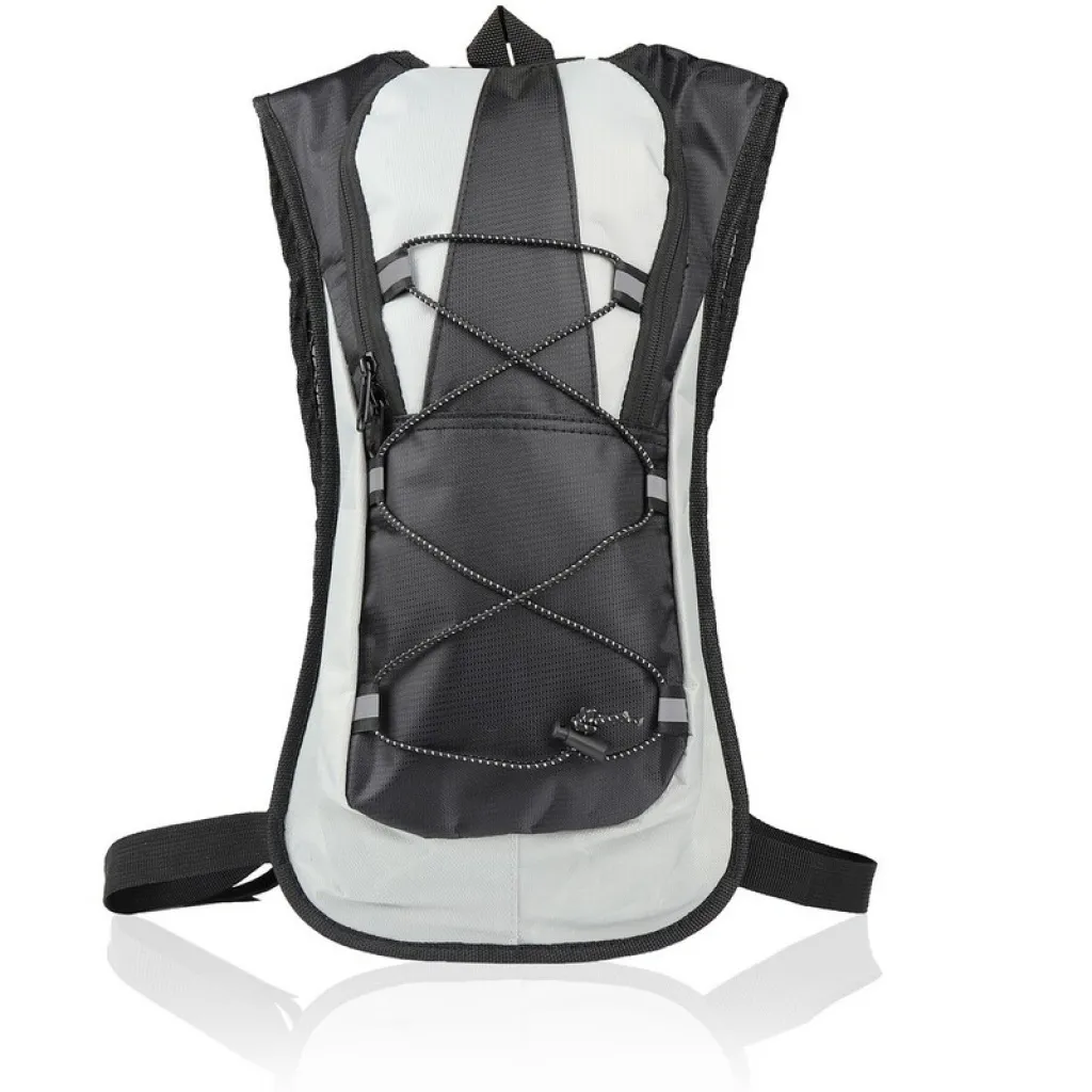 Air Gifts vodootporni biciklistički, sportski ruksak od 5 L. Glavni pretinac s patentnim zatvaračem, 1 unutarnji džep, reflektirajući detalji sprijeda (samo za promotivnu upotrebu), može zaprimiti vrećicu za vodu od 2L (nije uključena), podesive naramenice.