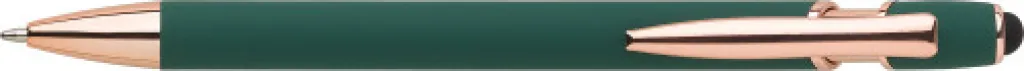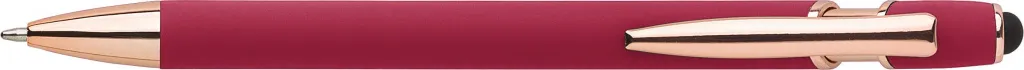 Aluminijska kemijska olovka s detaljima od ružičastog zlata i gumenim (touch) vrhom za kapacitivne zaslone. Plava tinta. Kada se ugravira, dizajn će biti srebrne boje.