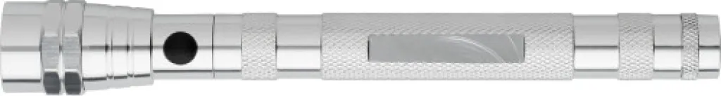 Aluminijska svjetiljka s tri LED svjetla, teleskopskom funkcijom i fleksibilnim krajem. Sadrži snažan magnet na jednom kraju za vješanje ispod poklopca automobila te ravnu površinu na ručki za tiskanje logotipa ili drugih oznaka. Baterije su uključene.