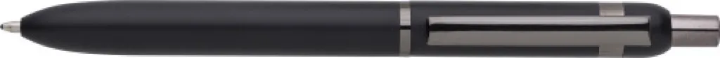 Kemijska olovka od aluminija i mesinga. Sa sjajnim detaljima na kopči, prstenu i gumbu. Plava tinta. Pojedinačno pakirano u u poklon kutiju s papirnatim omotom i magnetskim zatvaranjem.