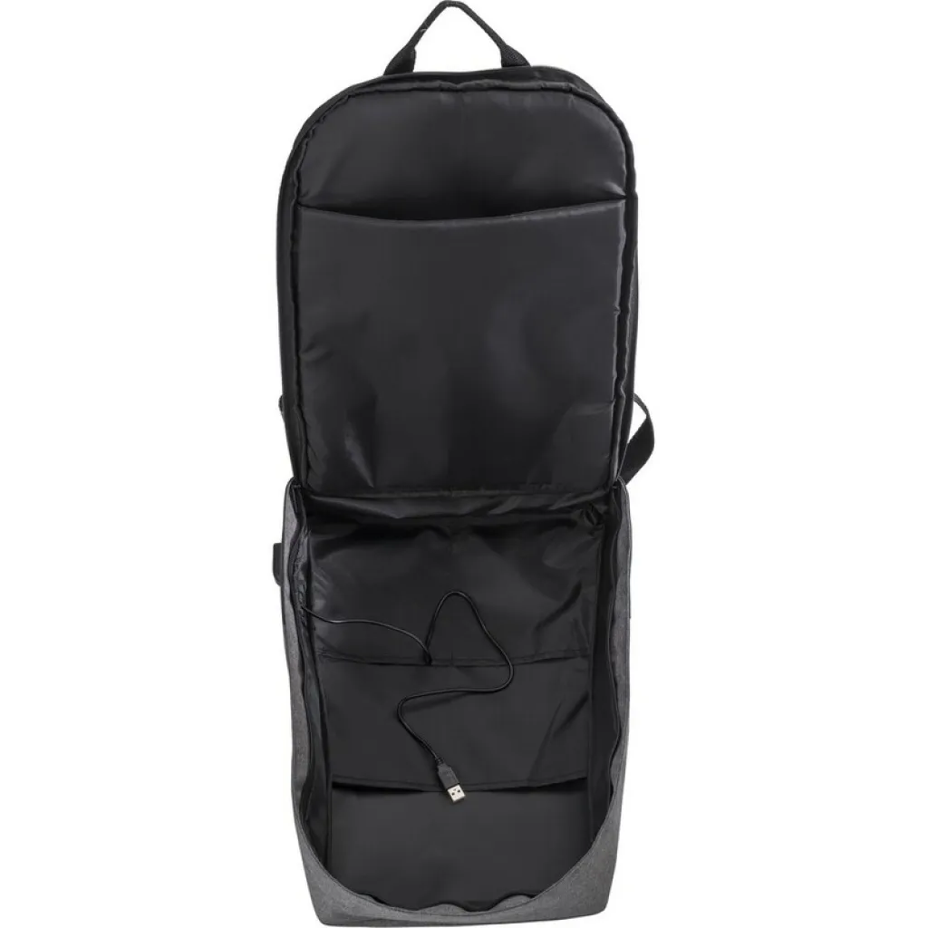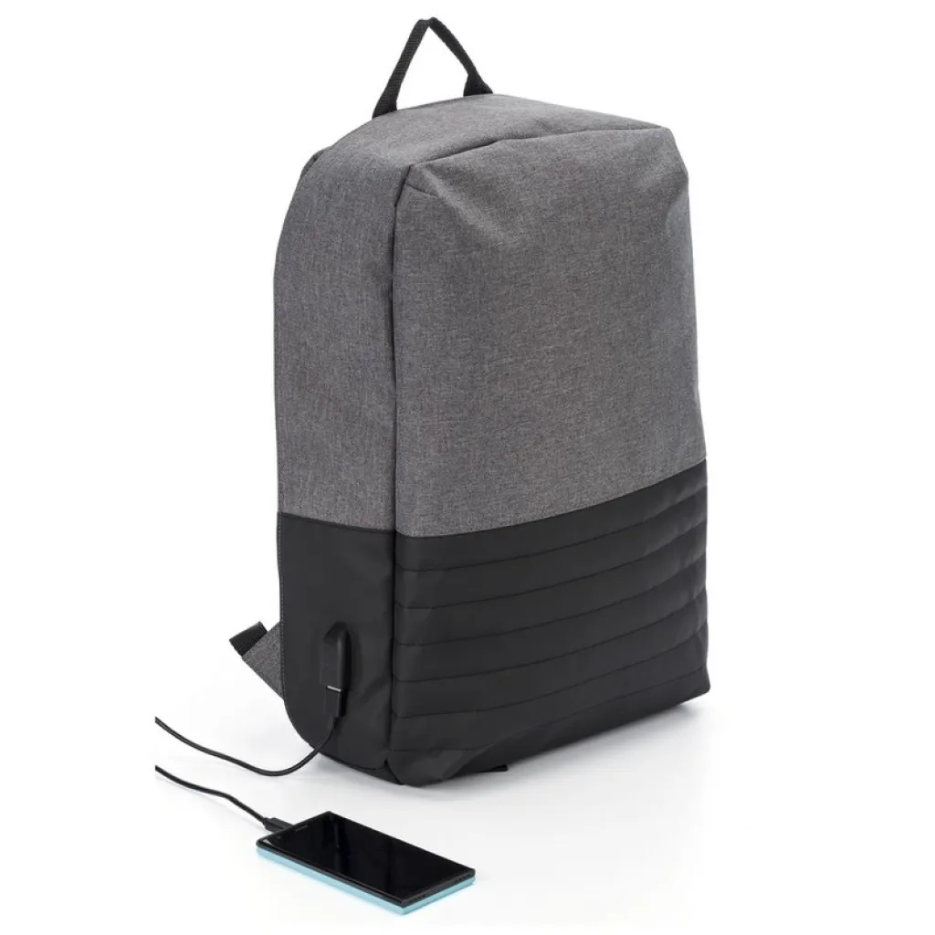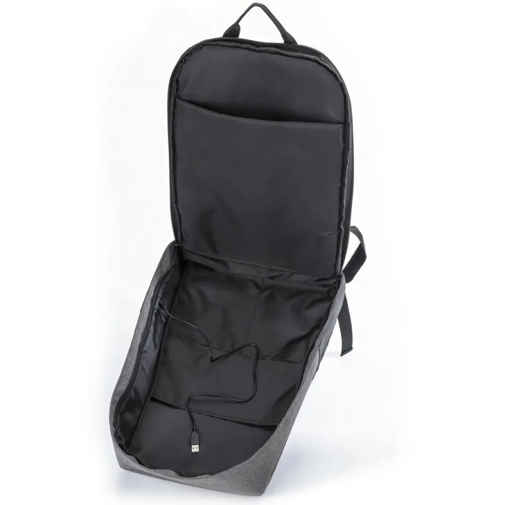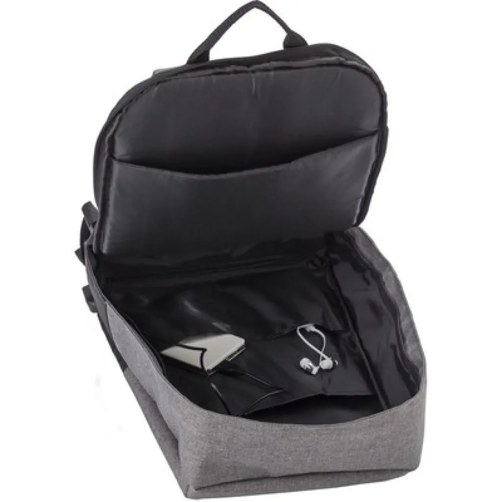 Anti-theft ruksak s pretincem za 15" laptop, glavni pretinac s patentnim zatvaračem, više unutarnjih džepova, USB priključak (powerbank nije uključen), podesive naramenice.