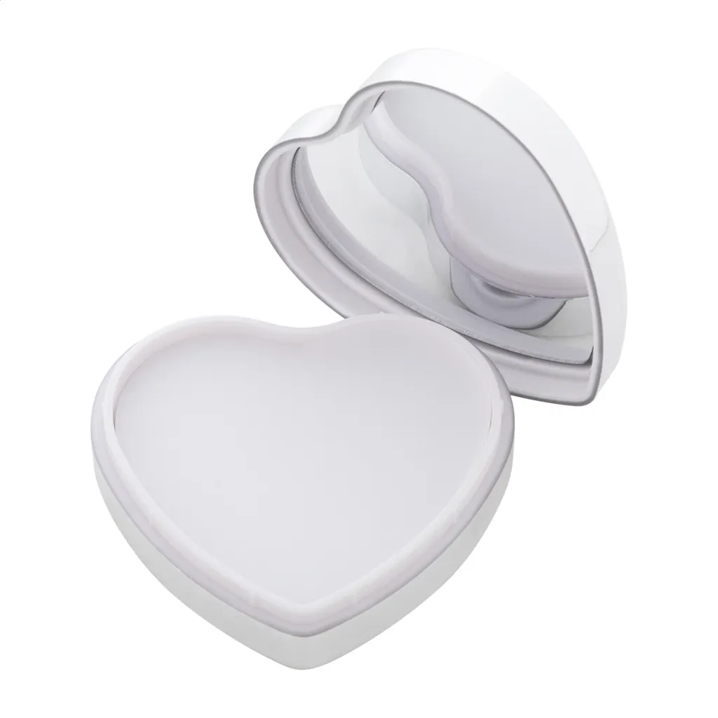 Balzam za usne od vanilije u kutijici od recikliranog ABS-a, metalik boje u obliku srca, sa SPF15 zaštitom. Proizvod ne sadrži sastojke životinjskog podrijetla.