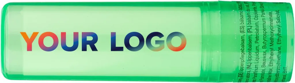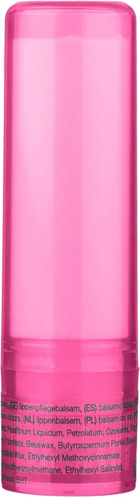Balzam za usne sa SPF15 zaštitom, u prozirnoj ambalaži. Bijela, srebrna i crna boja imaju mat završnu obradu.