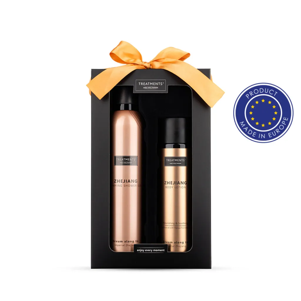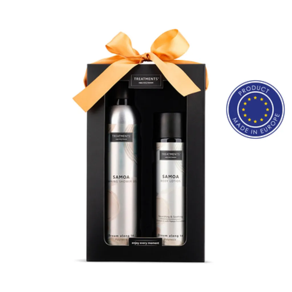 Set za ljepotu Tenderness TREATMENTS, pogodan za muškarce i žene, uključuje: pjenasti gel za tuširanje 200 ml, losion za tijelo 250 ml. Kozmetika je pakirana u elegantnoj papirnatoj kutiji, savršena za svakodnevnu njegu, dostupna u raznim mirisnim opcijama: 03 - Ceylon, 06 - Mahayana, 08 - Omani, 10 - Samoa, 11 - Uyuni, 16 - Zhejinag, 19 - Shinshiro, 21 - Verona.