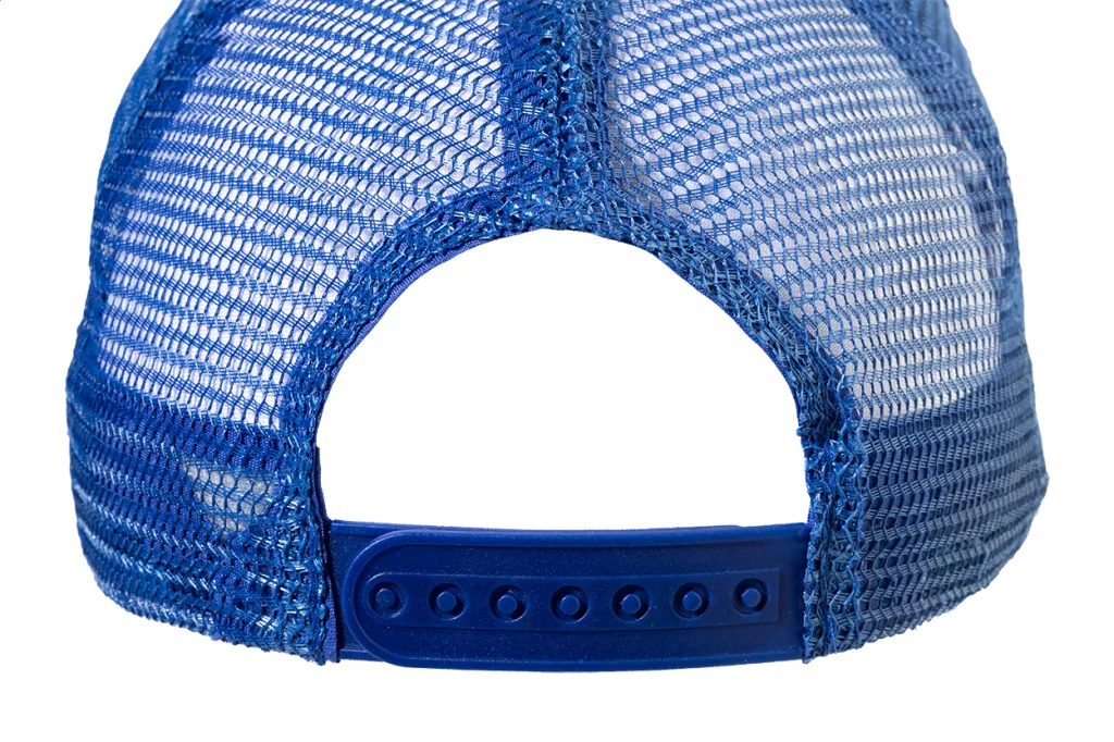Kapa od poliestera s 5 panela, šiltom, mrežastim stražnjim dijelom i plastičnom kopčom za podešavanje veličine.