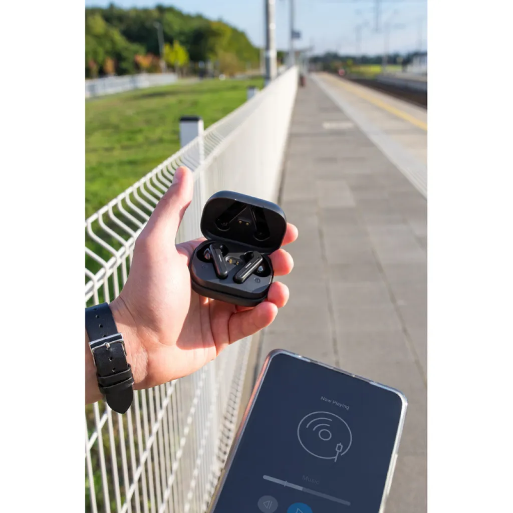 Exclusive Collection bežične slušalice, BT 5.3, sa stanicom za punjenje 300 mAh, 2x 40 mAh baterije za slušalice, stanica za punjenje s četiri diode koje pokazuju razinu snage, efekt pozadinskog osvjetljenja nakon graviranja, funkcija odgovaranja na pozive, vrijeme rada: cca. 7h (slušanje glazbe), radna udaljenost do 10 m, USB-C ulaz. USB-C na USB-C kabel uključen. Proizvod izrađen od RABS-a.