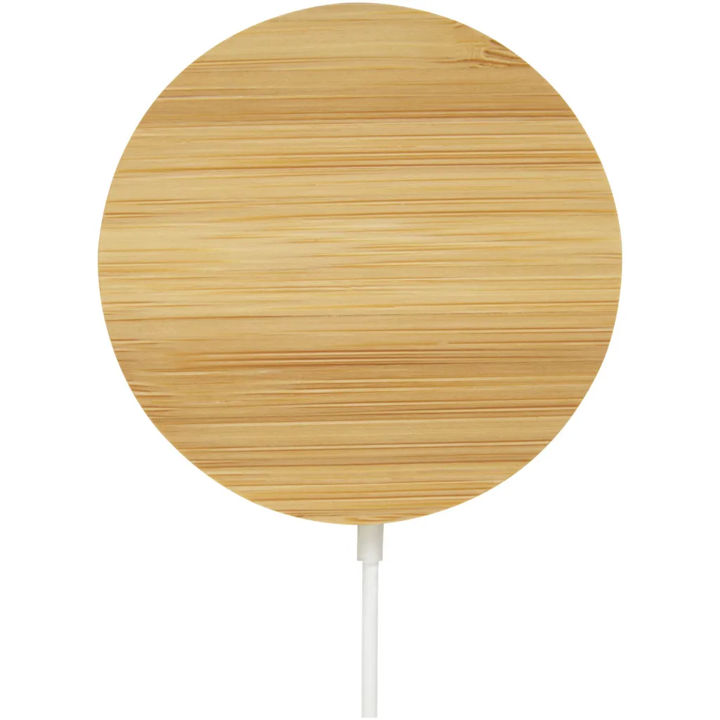 Bežična magnetska podloga za punjenje od bambusa koja se može pričvrstiti na stražnju stranu telefona (iPhone 12 /iPhone 12 Pro /iPhone 12 PrMAX) za punjenje uređaja. Bežični punjač od 10 W kompatibilan je sa svim Qi uređajima (iPhone 8 ili noviji i Android uređaji koji podržavaju bežično punjenje), a za ostale telefone može se koristiti kao obična podloga za bežično punjenje. Dolazi s dodatnim metalnim prstenom s dvostrukom trakom kako bi predmet bio kompatibilan s bilo kojim drugim pametnim telefonom koji ima mogućnost bežičnog punjenja. Isporučuje se u poklon kutiji s uputama za uporabu (oba izrađena od održivog materijala).