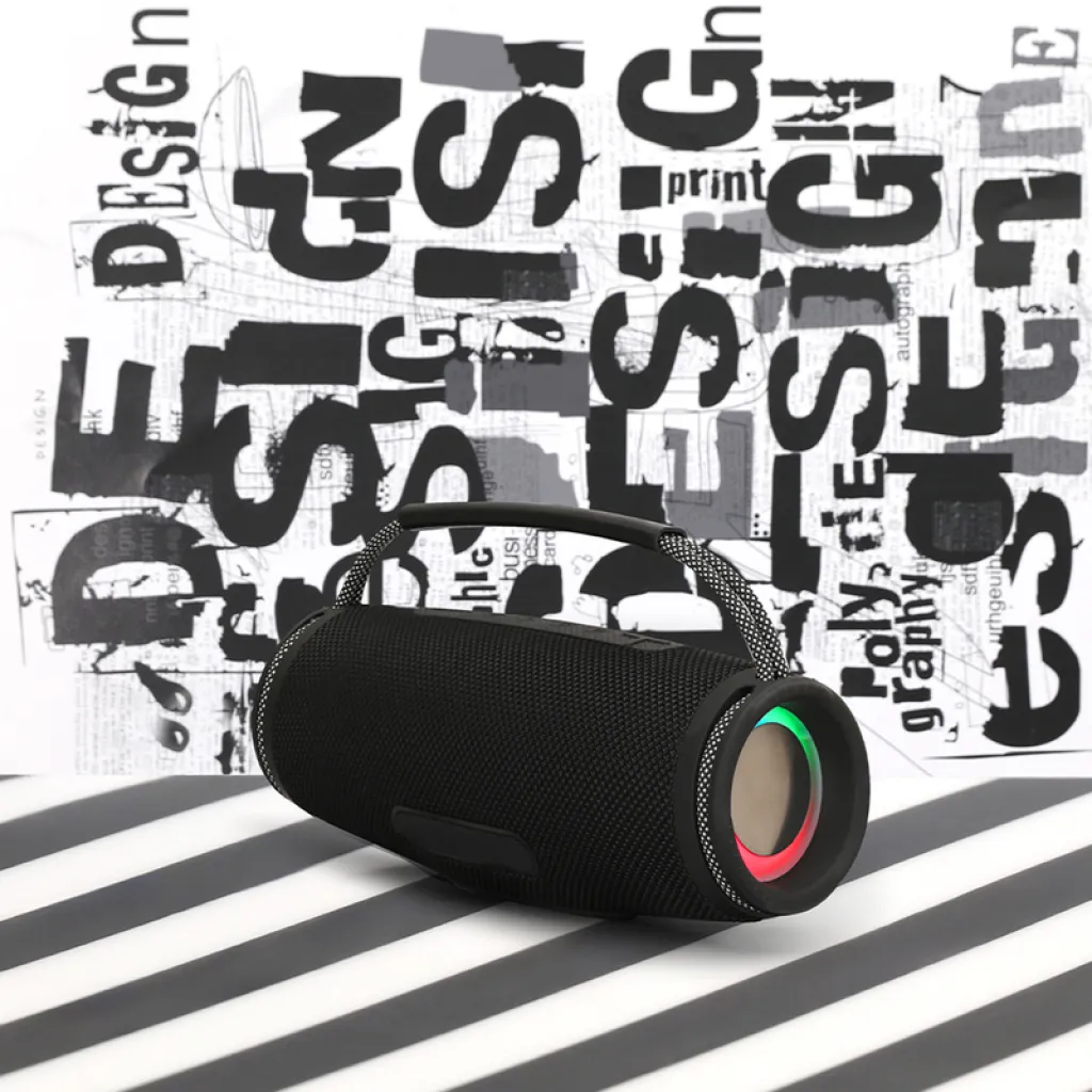 Bežični zvučnik BT 5.3, 2x5W. Ima silikonsku ručku za lakše nošenje, raznobojna LED svjetla sa sedam načina osvjetljenja, integriranu kontrolnu ploču, bateriju od 1200 mAh, utor za micro SD karticu (nije uključen), radnu udaljenost do 10 m, USB ulaz. USB punjenje. Mikro USB kabel uključen. Materijali proizvoda uključuju poliester.