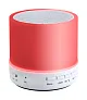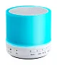 Bluetooth zvučnik u plastičnom kućištu s višebojnim LED svjetlom, funkcijom za pozive bez ruku (hands-free), FM radiom i ugrađenom punjivom baterijom. Uključen USB kabel za napajanje.