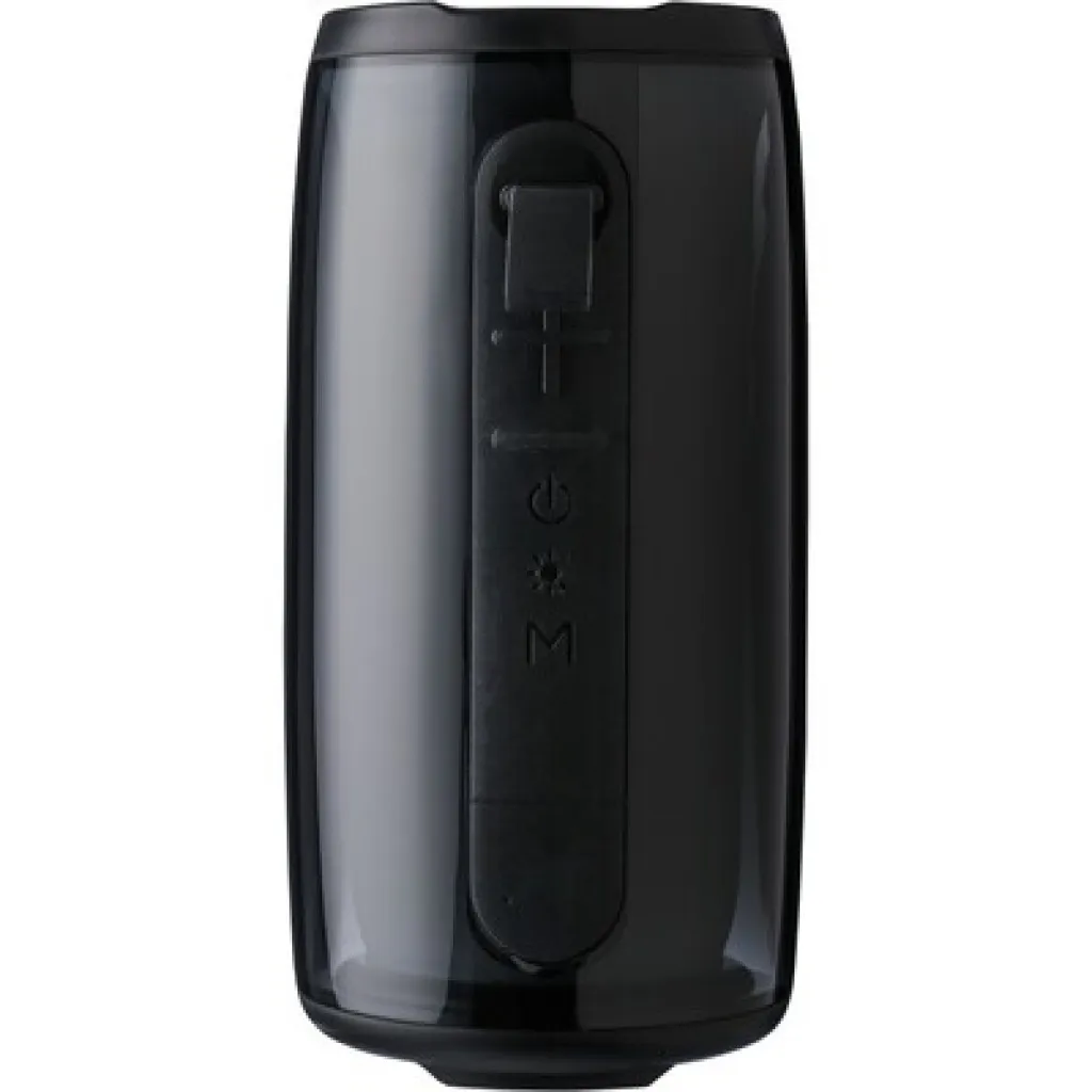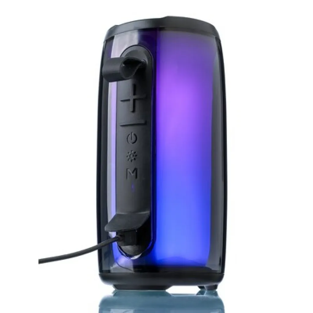 Bežični zvučnik, IPX6 što znači zaštitu od mlaza vode 3 minute, izlazna snaga 5W, DC 5 V ulaz, ugrađena baterija od 1200 mAh, radi na udaljenosti od 15-20 metara od izvora signala, omjer signal/šum 87 dB, 100 Hz -20K Hz frekvencija, uključuje 30 cm duljine tip C kabela za punjenje, 3,5 sata vremena sviranja, BT 4.2. Pakiran u smeđu kartonsku kutiju. Proizvod izrađen od ABS-a i PS-a.