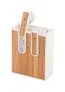 Bežične bluetooth slušalice s umetkom od bambusa i funkcijom hands-free poziva. U kućištu za punjenje od reciklirane ABS plastike s umetkom od bambusa. Uključuje USB kabel za punjenje.