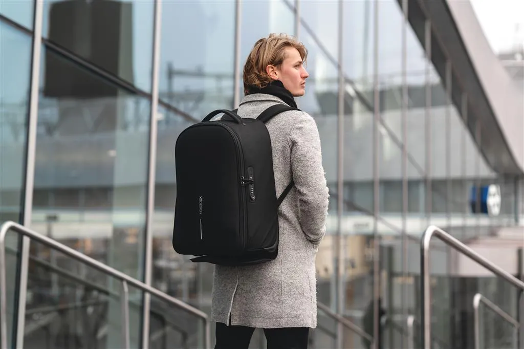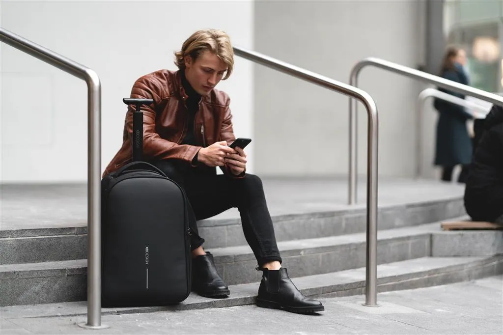 Pogodan je kao kolica i praktičan kao ruksak. Ruksak s kotačićima Bobby idealan je pratitelj na kratkim putovanjima ili dnevnim putovanjima. Lako ga pretvorite iz ruksaka u kolica tako da spremite naramenice na stražnju ploču i otpustite ručicu. Prilikom prelaska na ruksak možete sakriti ručku i omotati ruksak oko kotača održavajući leđa čistima. Kolica s ruksakom Bobby osiguravaju vam sigurnu povezanost s poznatim Bobby značajkama protiv krađe u kombinaciji s TSA® lokotom. U unutrašnjosti ćete pronaći odvojene odjeljke za odjeću i poslovne uređaje s džepom prijenosnog računala s brzim pristupom koji se otvara pod kutom od 30 stupnjeva i uklapa prijenosna računala do 17”. Uz to, imate džep za bocu vode i džep zaštićen RFID zaštitom koji zaštićuje vaš identitet. Ruksak s kotačićima Bobby izrađen je od recikliranih materijala i može se ponijeti u zrakoplov kao ručna prtljaga. Registrirani dizajn®