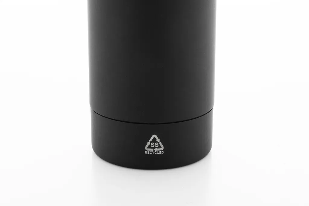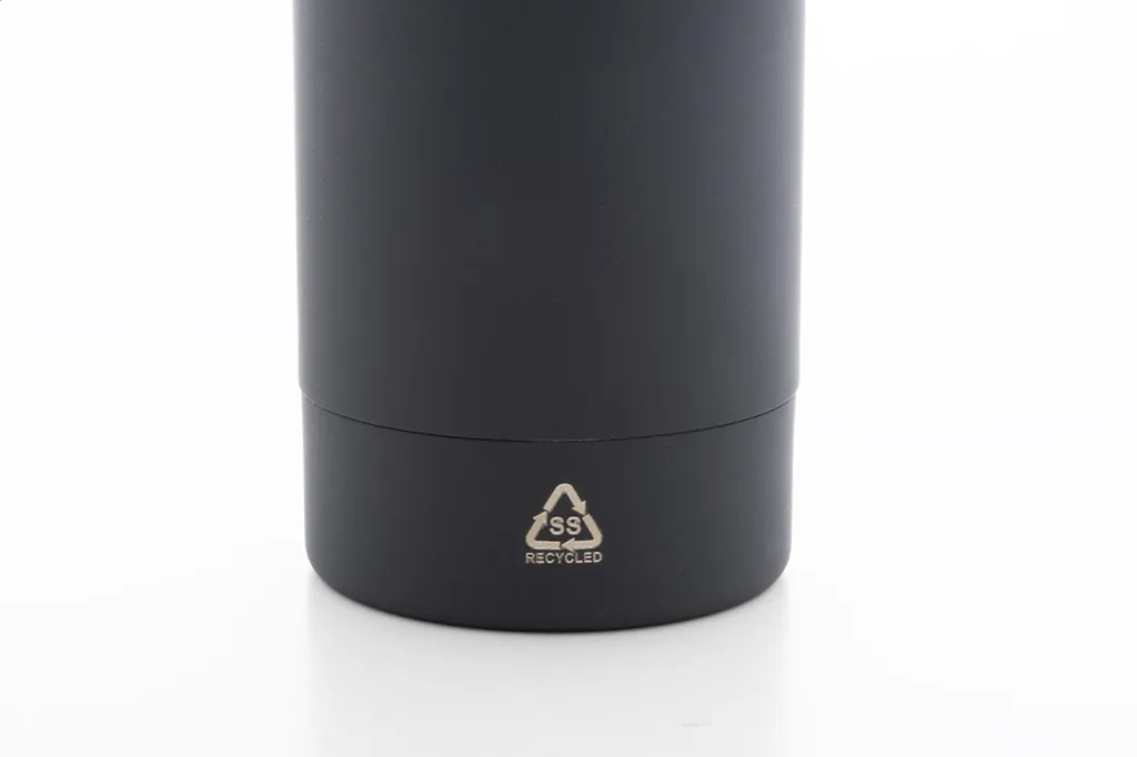 Boca od recikliranog nehrđajućeg čelika s gumiranom završnom obradom. Kapacitet: 750 ml.