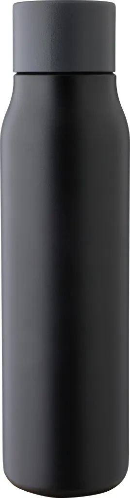 Boca za piće od recikliranog nehrđajućeg čelika (600 ml). Unutrašnjost je izrađena od nehrđajućeg čelika 304, a izvana od nehrđajućeg čelika 201. Ima nepropusni crni PP poklopac s aluminijskim karabinerom i omčom za nošenje. Karabiner nije pogodan za penjanje. Održava napitke toplima 6 sati ili hladnima 9 sati. Uključuje ugravirani reciklirani logo na prednjoj strani. Pojedinačno pakirano u smeđu kartonsku kutiju.