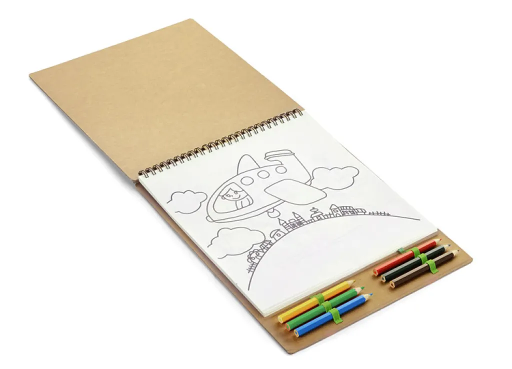 Bojanka se sastoji od 20 listova za bojanje, 10 praznih listova i 6 drvenih bojica. Udobna ručka i veliki prostor za vaš logo ovu bojanku čine savršenim poklonom svakom malom umjetniku.