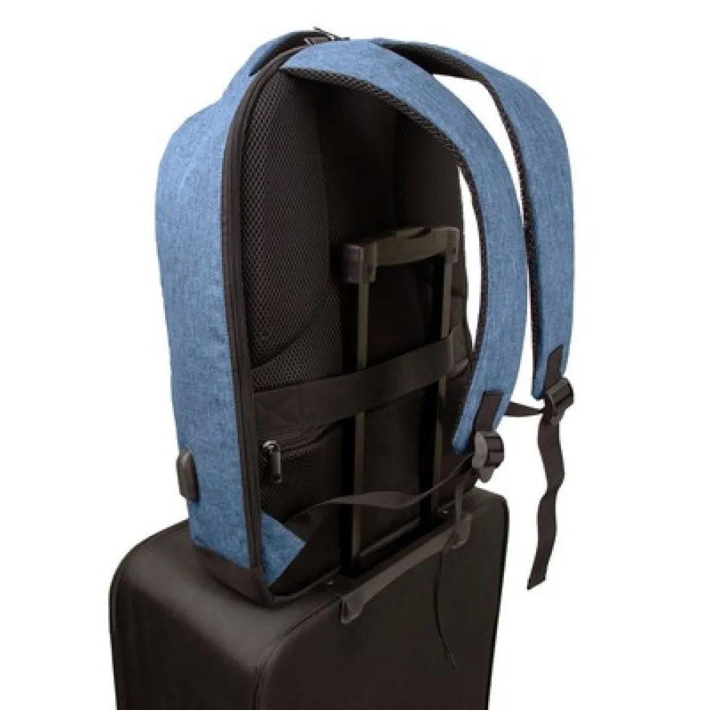 B'RIGHT ruksak s pretincem za laptop od 15,6", izrađen od RPET-a, GRS (Global RecycIed Standard) certifikat, glavni pretinac s patentnim zatvaračem i prednji džep, nekoliko unutarnjih pretinaca uključujući 1 s patentnim zatvaračem (odvojiv, s čičak kopčom), 1 bočni džep , 1 stražnji džep s patentnim zatvaračem, remen za pričvršćivanje na putnu torbu, USB priključak s kabelom za punjenje (powerbank nije uključen), podstavljene podesive naramenice.