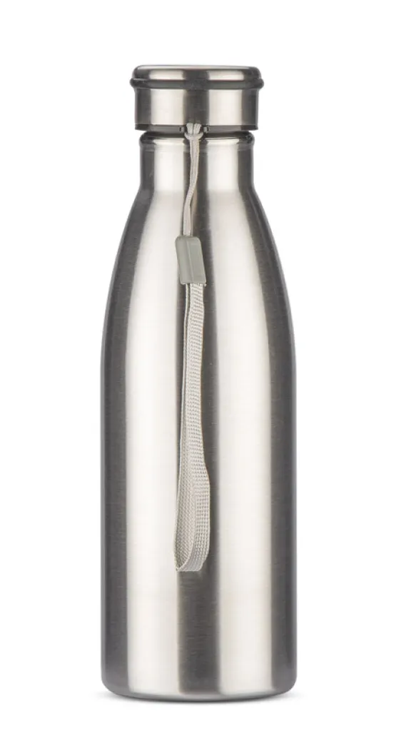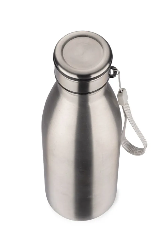 KONRA boca od nehrđajućeg čelika izgleda elegantno i originalno. Boca ima čep na navoj koji osigurava njezinu nepropusnost i jednostavnost korištenja. Uzica olakšava nošenje. Kapacitet 600 ml.