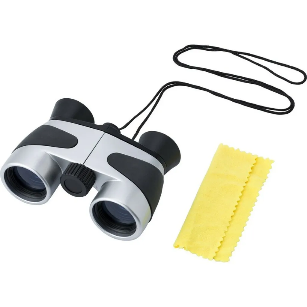 Dvogled 4x30 i krpica za čišćenje, dolazi u crnoj torbici od najlona s omčom za remen.