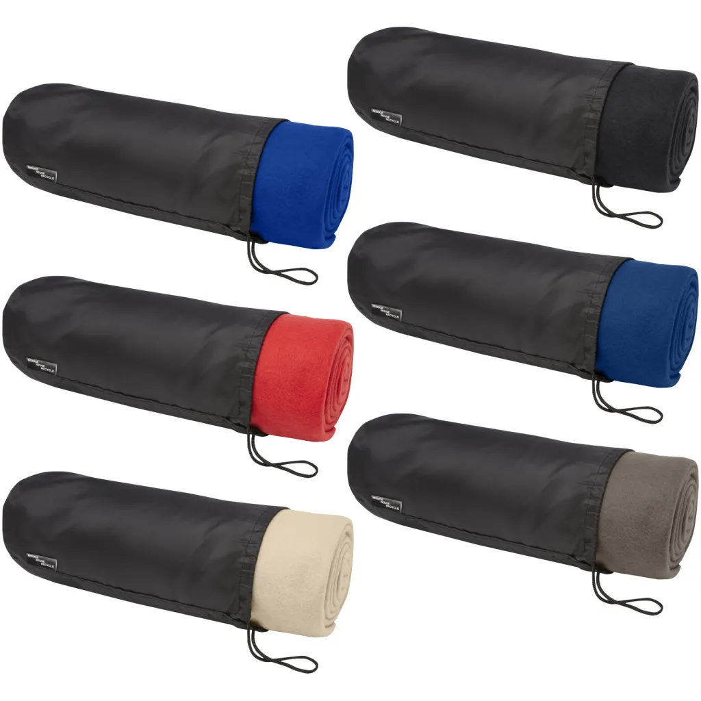 RPET pokrivač od polarnog flisa pogodan za unutarnju i vanjsku upotrebu. Dolazi s torbicom za prijenos od 190T RPET sa zatvaračem za vezanje. Pakirano u recikliranu vrećicu. Veličina torbice: duljina 34 cm, promjer 13 cm.
