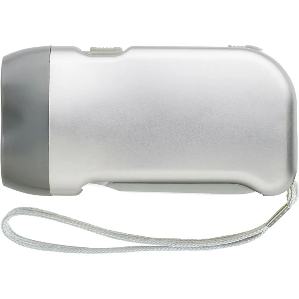 Dinamo svjetiljka s 2 LED svjetla i remenom za oko zgloba.