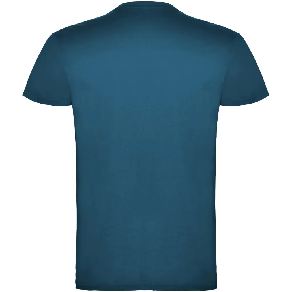 Majica kratkih rukava s dvoslojnim okruglim izrezom od elastina izrađena od cjevaste tkanine. Pojačani pokriveni šavovi na ovratniku. Etiketa koja se može ukloniti. Model je visok 120 cm i nosi veličinu 5/6.