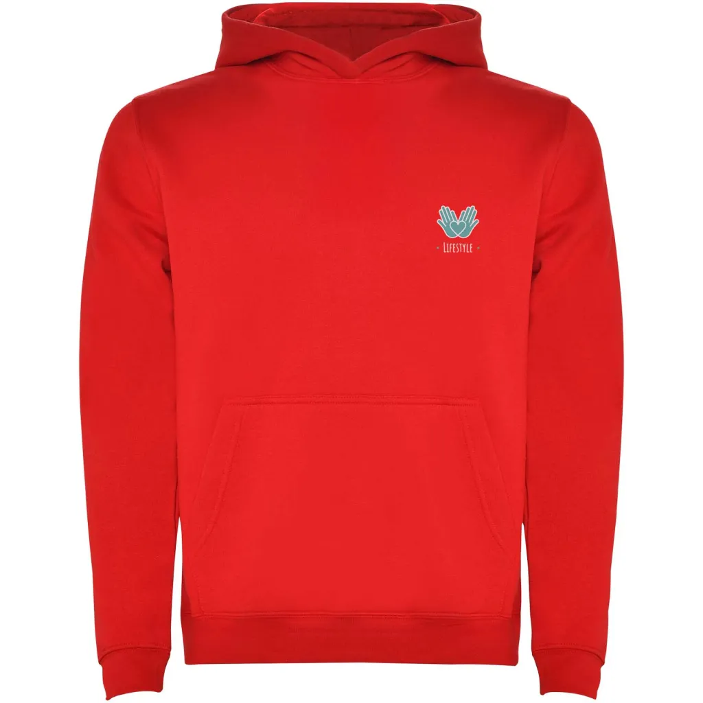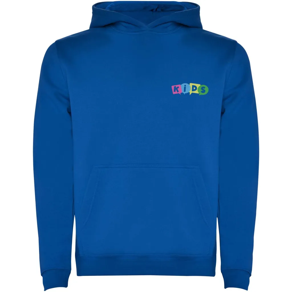 Dvobojna majica s kapuljačom s dvostrukom tkaninom. Ojačani prekriveni šavovi na ovratniku i džep u stilu "klokanica". Rebrasti porubi s elastanom (1x1) na manžetama i donjem rubu. Odvojiva etiketa. Model je visok 120 cm i nosi veličinu 5/6.