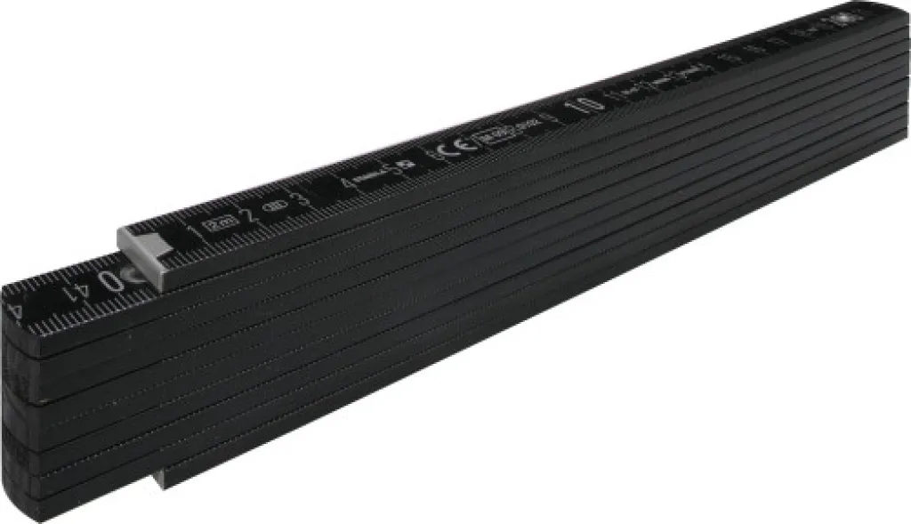 Drveni Stabila sklopivi metar ukupne dužine 2 metra. Mjerilo je u cm. Metar ima čvrsti premaz otporan na udarce. Sadrži ugrađenu kutnu shemu i funkciju metra. Klasa točnosti 3.