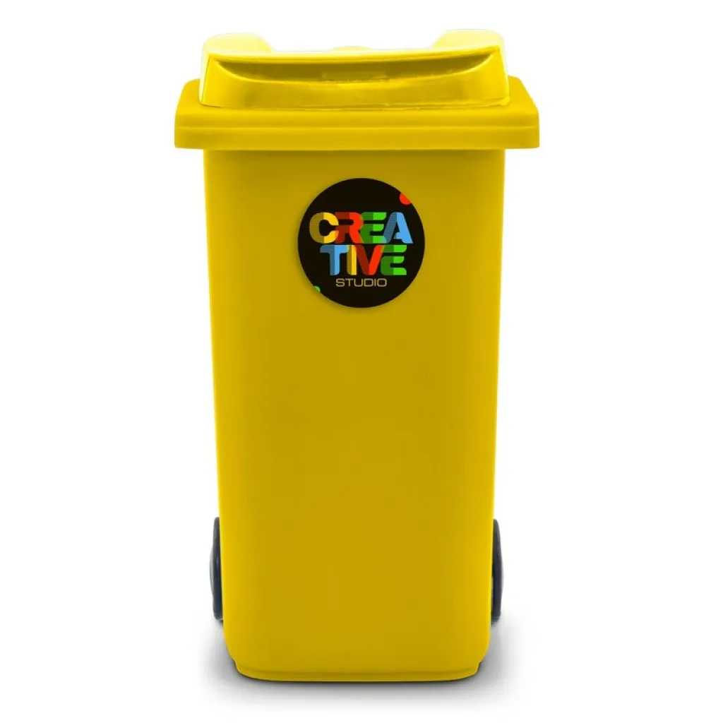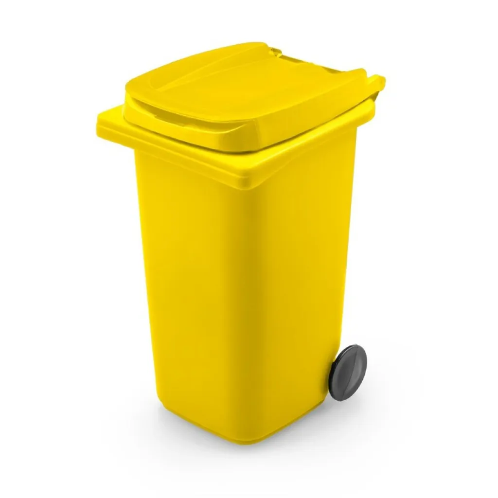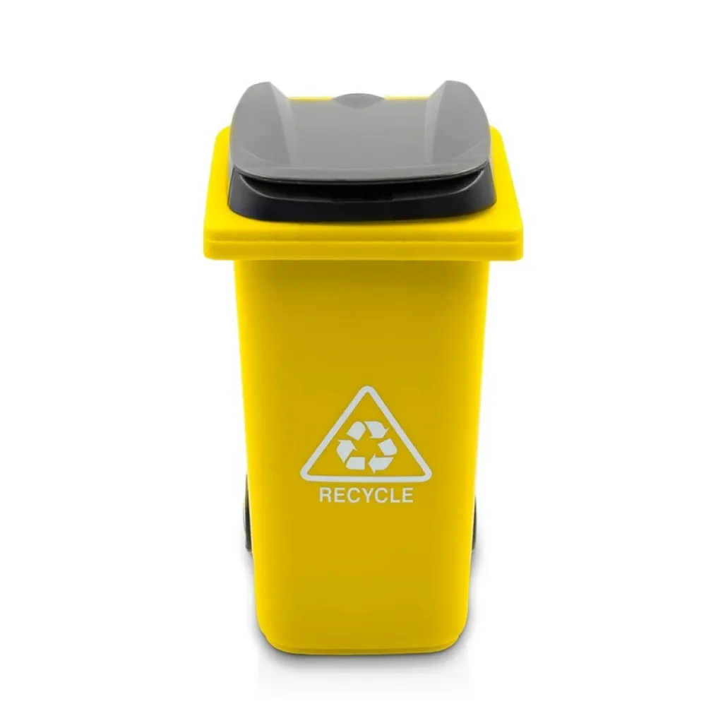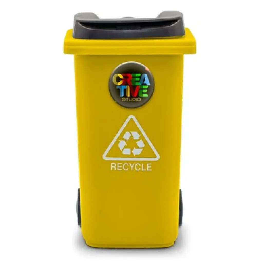 Držač za olovke s kotačićima u obliku kante za smeće, s poklopcem i mat završnom obradom, proizvod izrađen od PP-a.