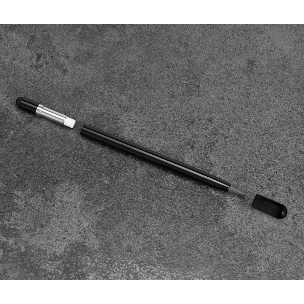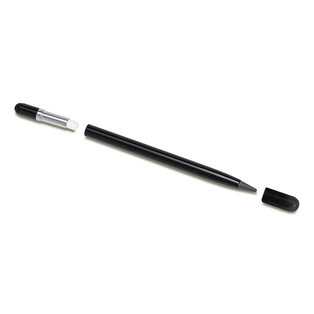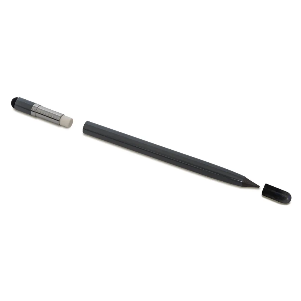 Dugotrajna olovka bez grafita s jezgrom od metalne legure, gumicom i vrhom za zaslon osjetljiv na dodir.