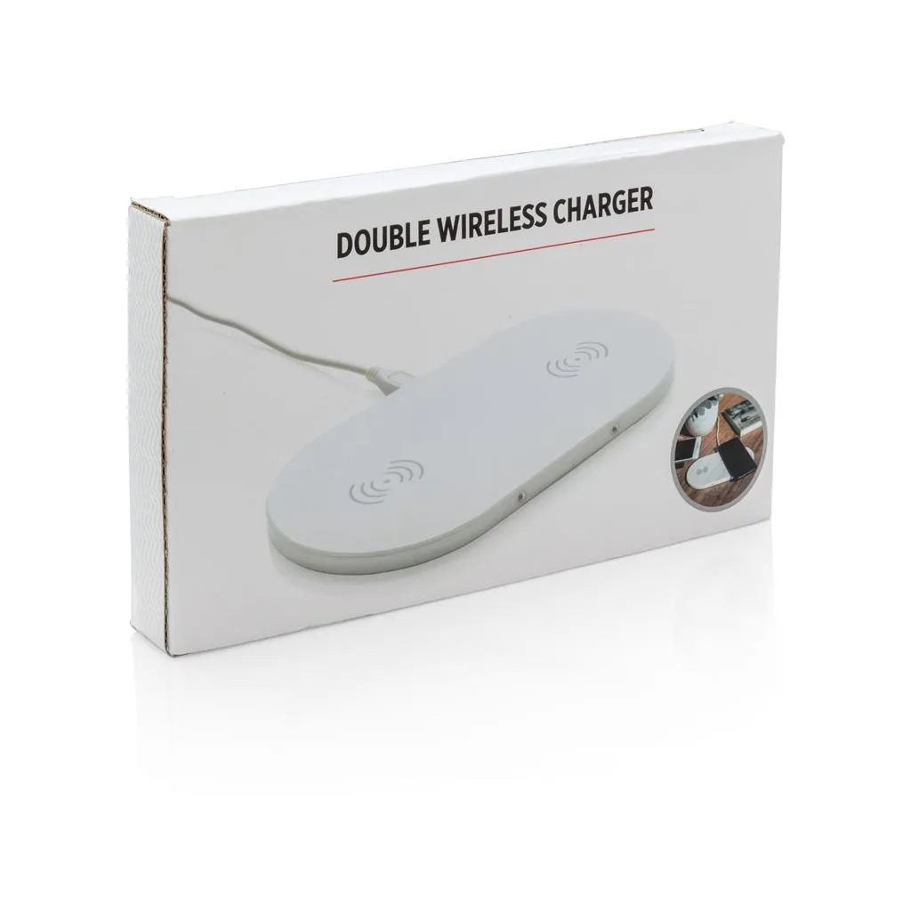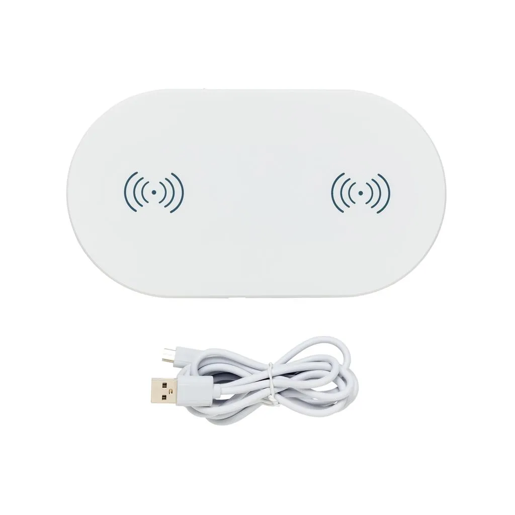 Dvostruki bežični jastučić za punjenje od 5 W koji omogućuje istovremeno punjenje dva mobilna telefona bez ikakvih žica. Jednostavno priključite bežični jastučić za punjenje pomoću 150 cm mikro USB kabela na USB izvor napajanja i mobitel možete puniti kad god želite tako što ćete ih jednostavno staviti na podlogu. Prilikom punjenja dva uređaja preporučuje se korištenje 2.1A USB punjača za održavanje optimalne brzine punjenja. Napravljeno od ABS-a. Bežično punjenje kompatibilno sa svim QI uređajima kao što su Android najnovije generacije, iPhone 8 i noviji. Ulaz: 5V / 1A, bežični izlaz 5V / 1A 5W.