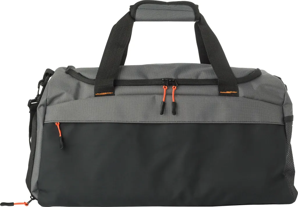 Dvobojna duffle torba 500D s prednjim džepom s patentnim zatvaračem. Ventilirani bočni pretinac za cipele, mrežasti džep na suprotnoj strani. Kratke ručke s čičak trakom za zatvaranje. Veliki glavni pretinac s ojačanim dnom.