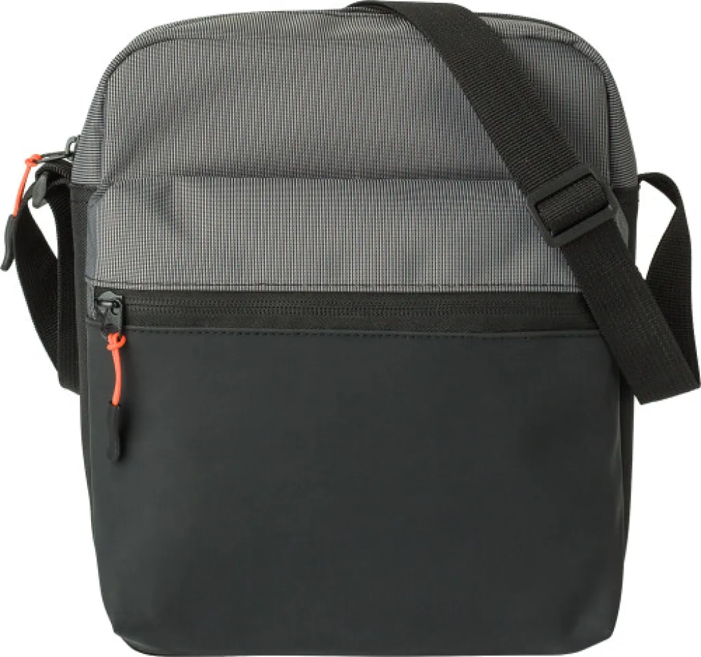 Dvobojna torba za rame 500D. Podesiva naramenica s vezicama u boji. Mali prednji džep s patentnim zatvaračem. Veliki gornji pretinac s patentnim zatvaračem s malim unutarnjim džepom s patentnim zatvaračem na stražnjoj strani.