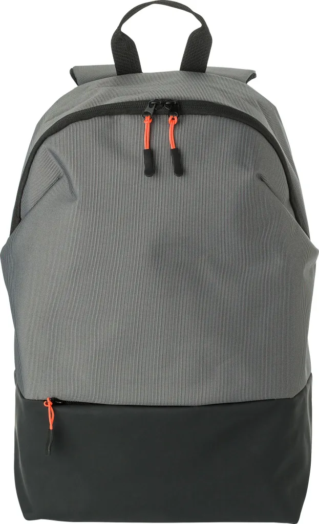 Dvobojni ruksak 500D. Podesiva i ventilirana podstava za leđa i naramenice. Veliki pretinac na zip, s džepom za prijenosno računalo od 15 inča.