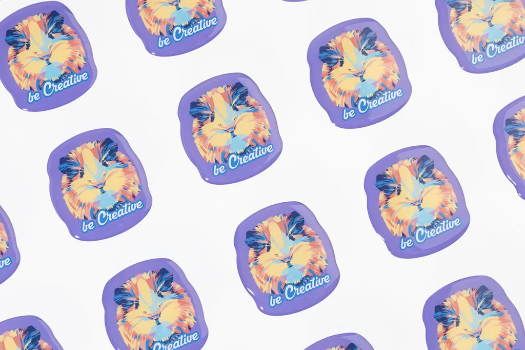 Personalizirana epoxy naljepnica, izrađena u obliku i veličini po želji. Dolazi u listovima. Minimalna količina za narudžbu: 250 kom.