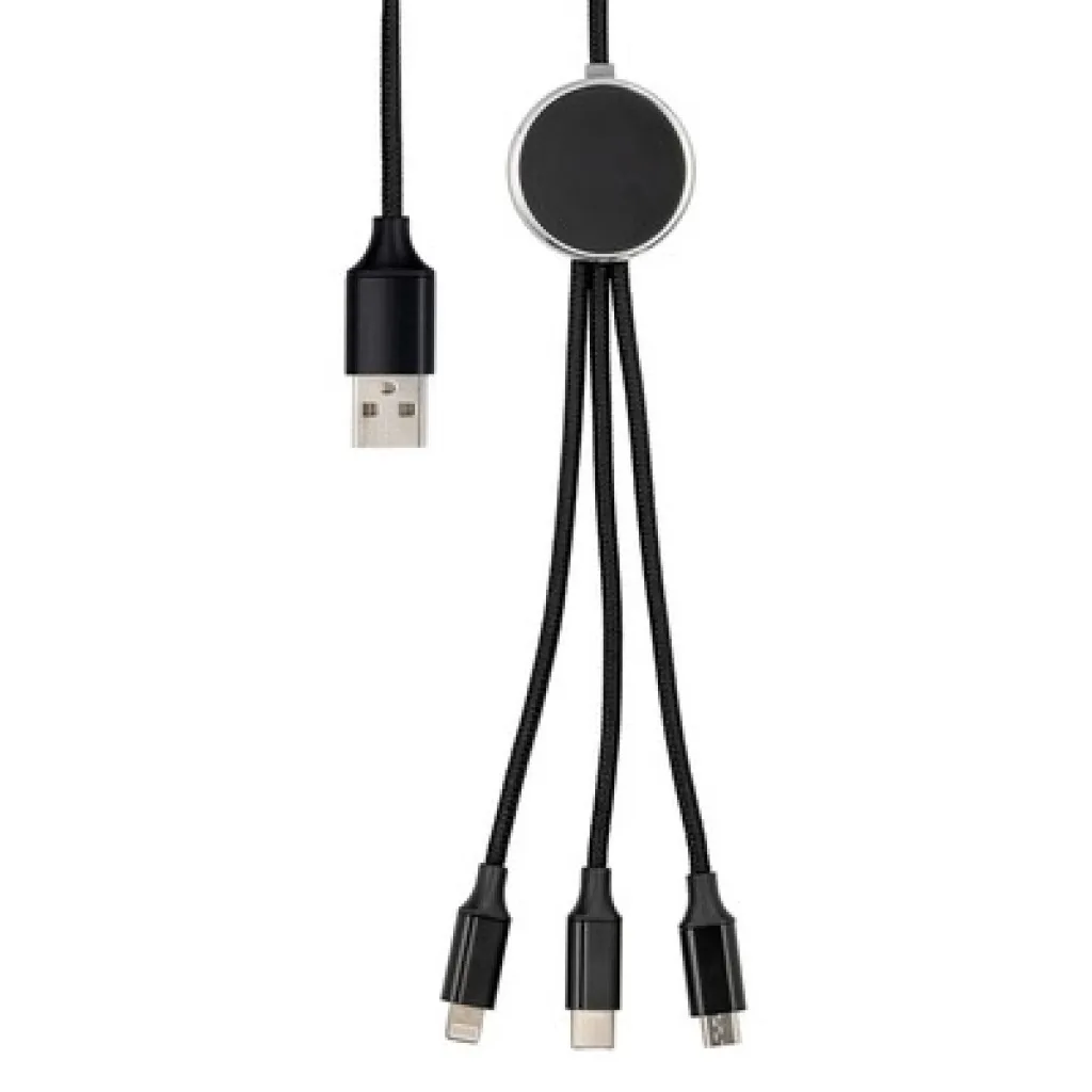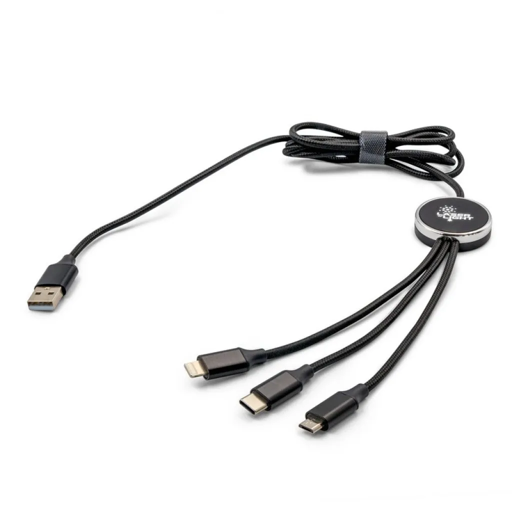 Exclusive Collection kabel za punjenje s 4 utikača: USB, micro USB, USB tip C. Kompatibilan s iOS uređajima, 5V/2.4A. S efektom pozadinskog osvjetljenja nakon graviranja.
