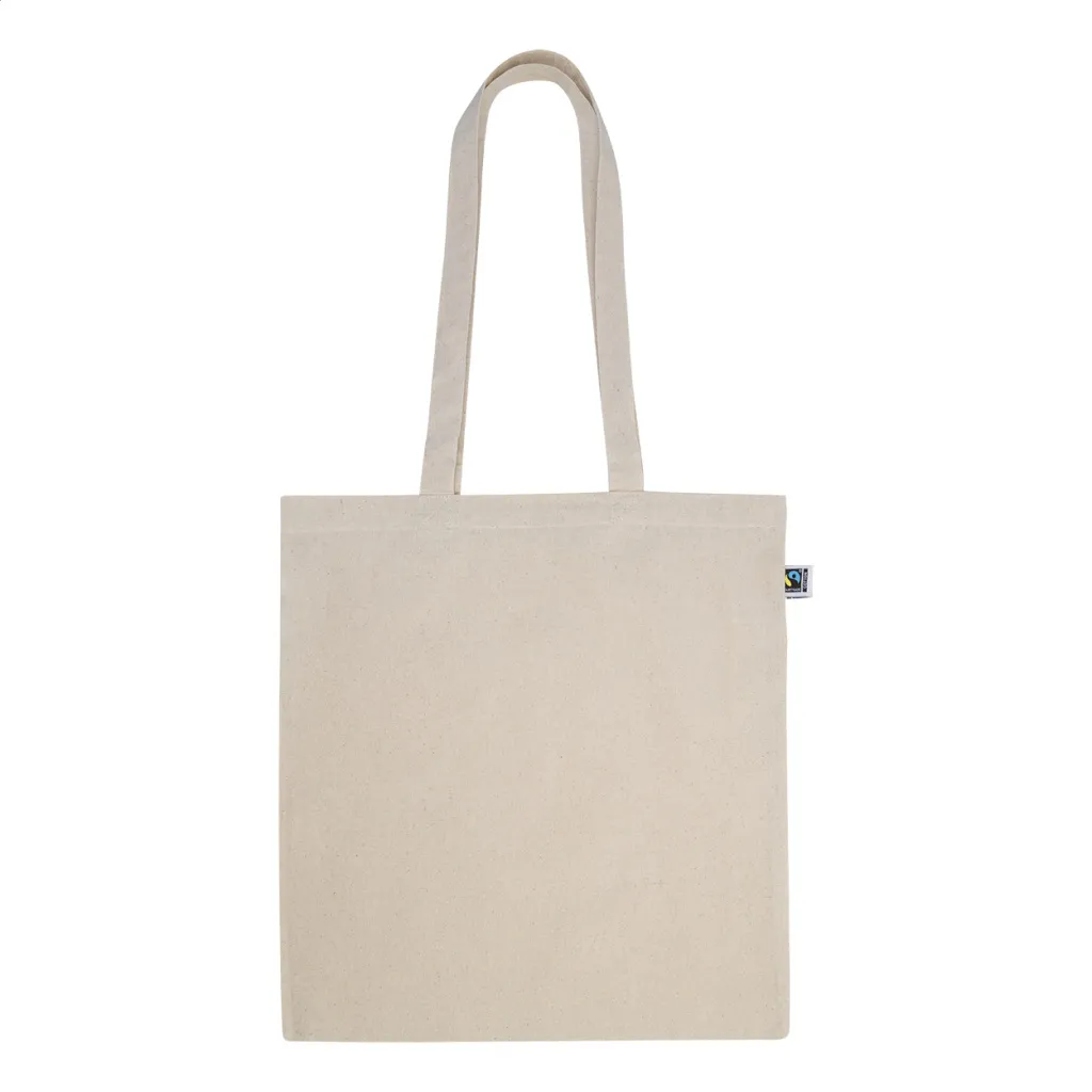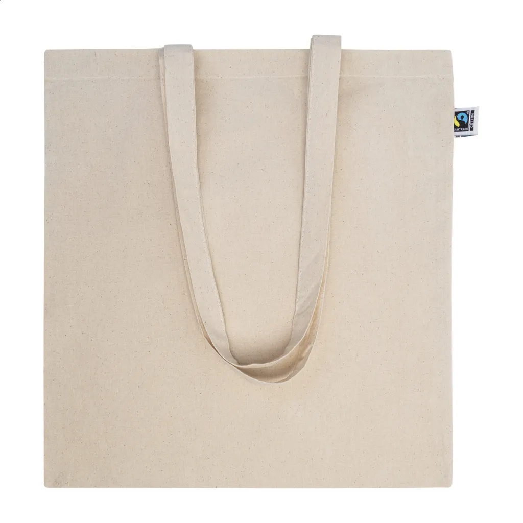 Fairtrade višekratna pamučna torba za kupovinu s dugim ručkama. 100% Fairtrade pamuk, 180 g/m². S prepoznatljivom oznakom Fairtrade.