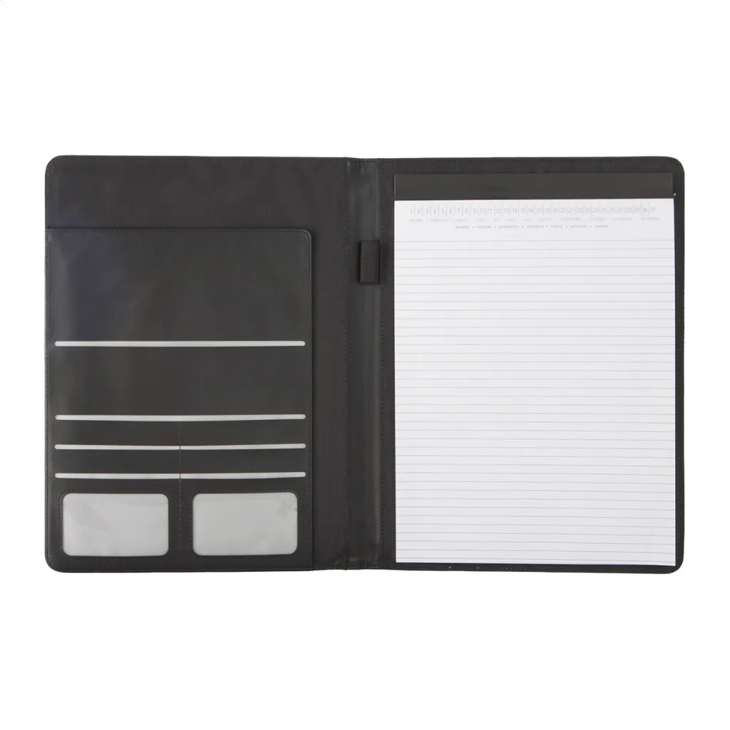 Fascikla A4 za dokumente od umjetne kože, blokom s 20 listova s crtama i držačem za kemijsku olovku i posjetnice.