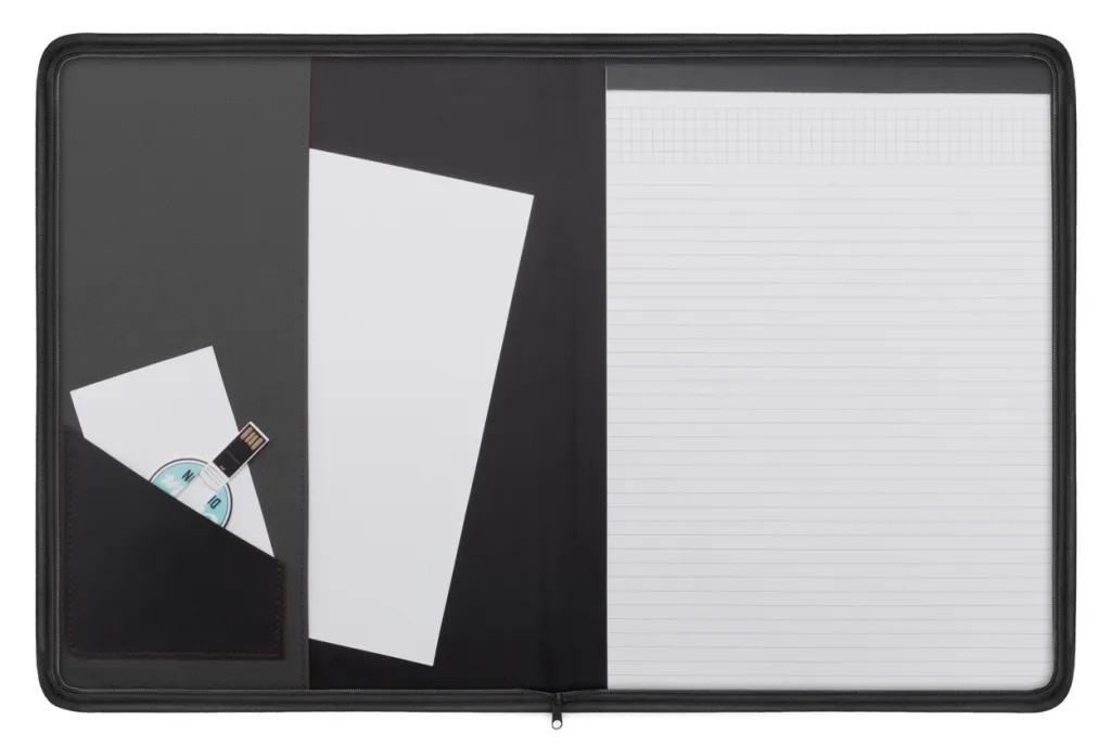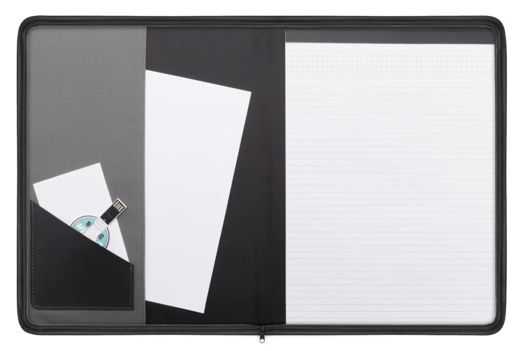 Fascikla za dokumente A4 od 600D poliestera s patentnim zatvaračem i blokom s 20 listova.