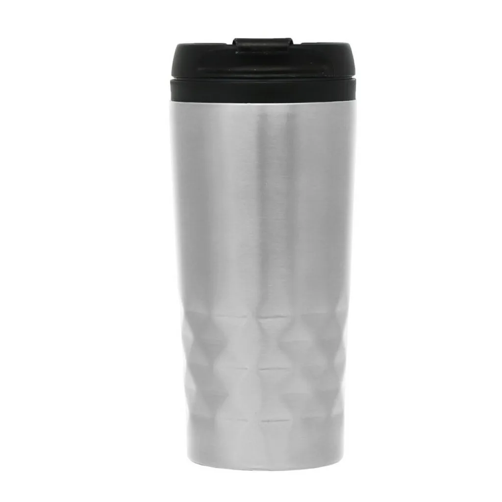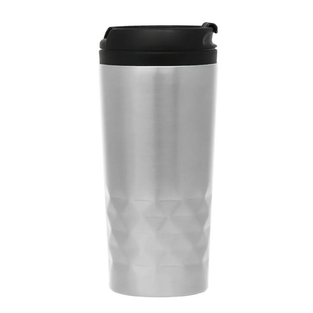 Geometrijska putna šalica od 310 ml, izvana nehrđajući čelik, PP unutrašnjost, ljestvica toplinske izolacije: 1.