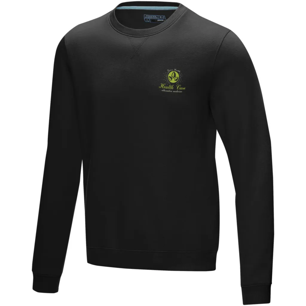 Održiva promotivna odjeća. Okrugli ovratnik. Ravno pleteni V-umetak na sredini sprijeda. Početkan s unutarnje strane. Ravno pleteni rebrasti ovratnik, manžete i pasica. Dvobojna vratna traka. Otisnuta etiketa za udobnost nošenja.