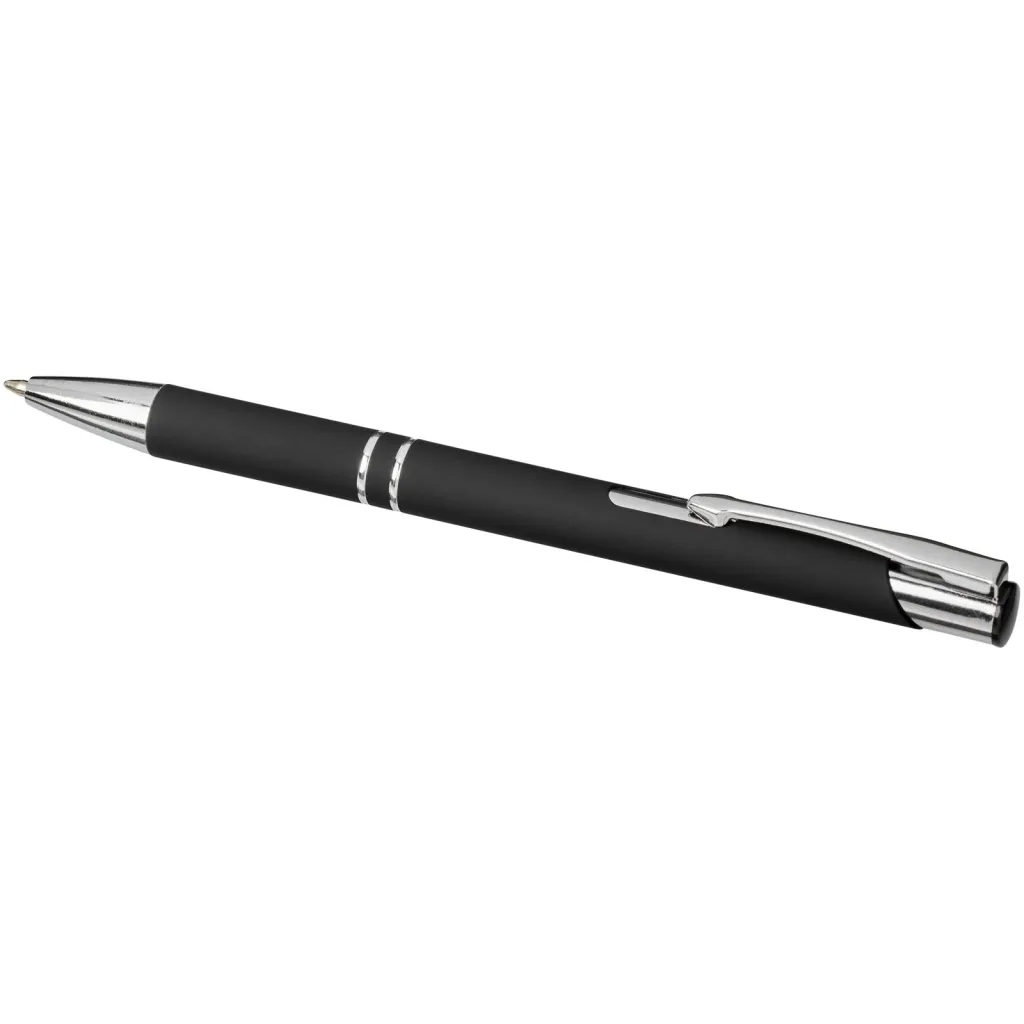 Moderna aluminijska kemijska olovka s pritisnim mehanizmom paljenja i gumiranom presvlakom. Kada se laserski ugravira, pojavit će se sjajni kromirani sloj olovke. Opsežna i popularna linija olovaka Moneta dostupna je u mnogo različitih stilova i završnih obrada.