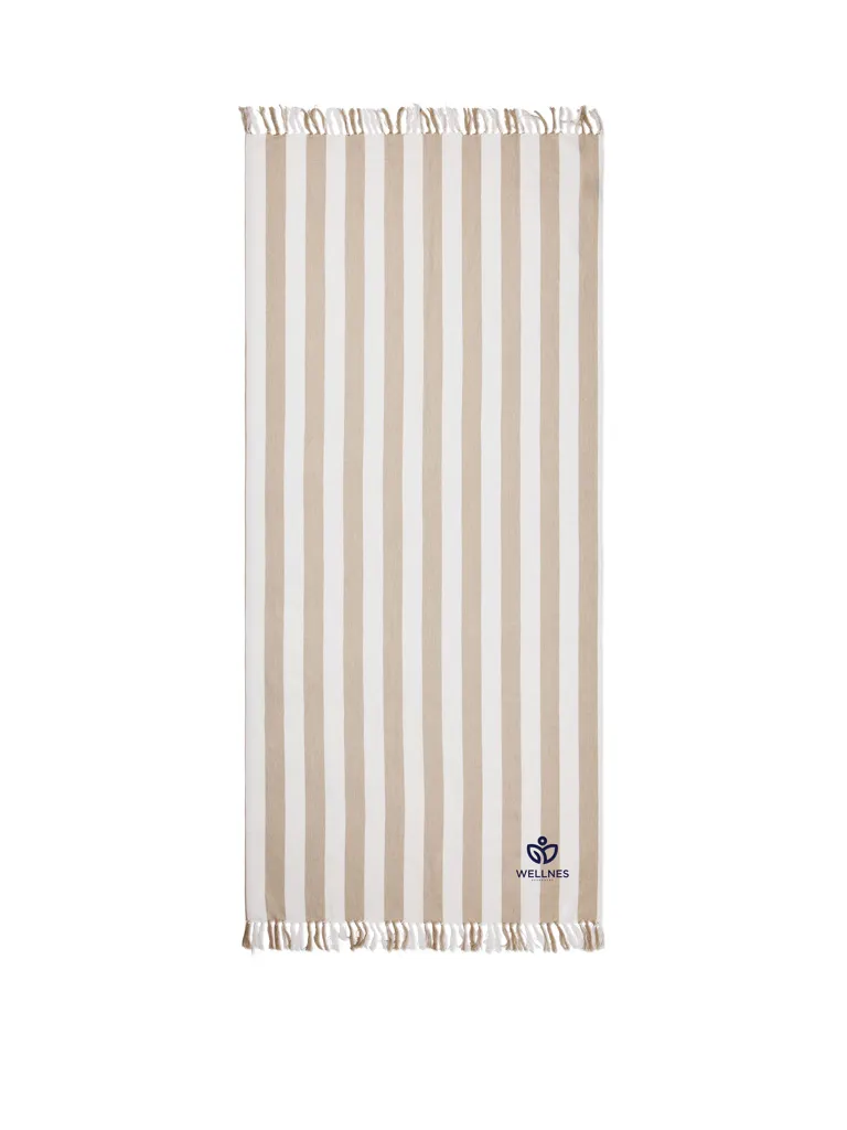 Ovaj hammam ručnik za plažu ima klasični dvobojni prugasti uzorak s resama na kratkim stranama. Izrađen je od lagane i prozračne mješavine od 200 g/m², kombinira udobnost pamuka s prednostima brzog sušenja poliestera. S dimenzijama 80x180 cm savršen je za plažu ili bazen. Certificiran od strane GRS (Global Recycled Standard), GRS certifikat jamči da je certificiran cijeli opskrbni lanac recikliranih materijala. Ukupni reciklirani sadržaj temelji se na ukupnoj težini proizvoda. Ovaj proizvod sadrži 68% GRS certificiranog recikliranog pamuka i 29% GRS certificiranog recikliranog poliestera.