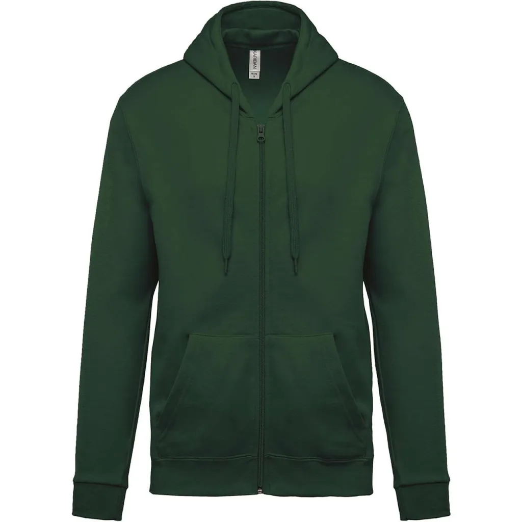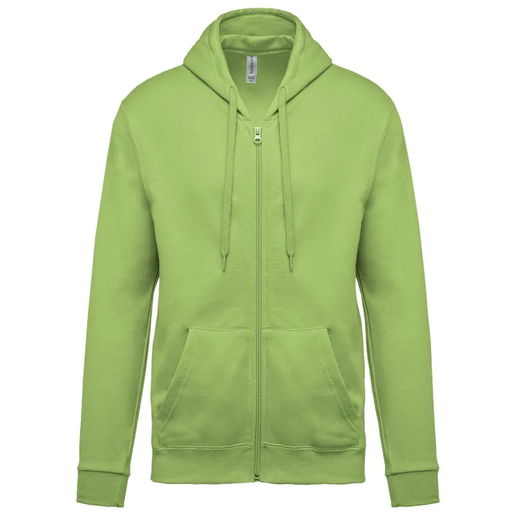 80% pamuk / 20% poliester. Četkani flis. Uređani rukavi. Najlonski patentni zatvarač. Obložena kapuljača s vezicom na potezanje. Rebraste manžete i rub.