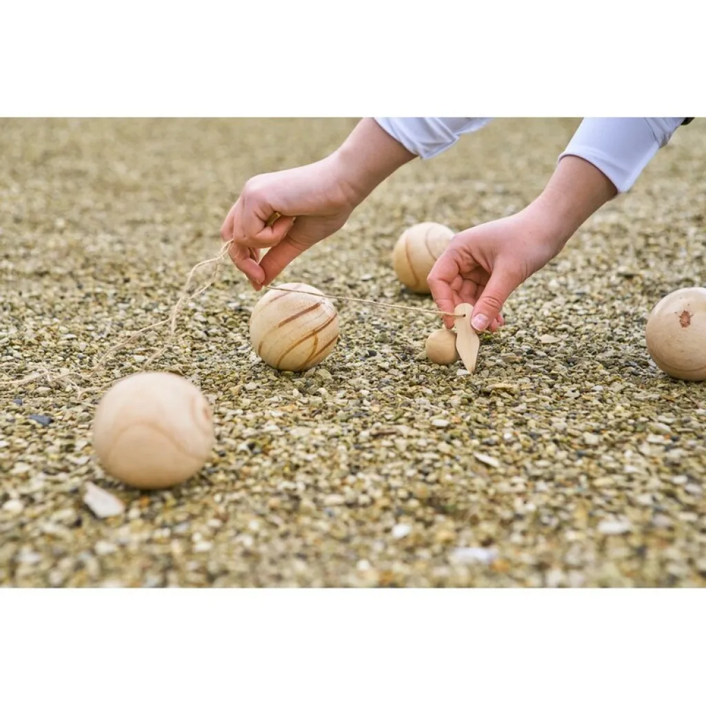 Igra vještina, koja uključuje šestloptica (svaka 7 cm) i jednu manju lopticu (2 cm), dolazi s užetom i pakirana je kao set u pamučnu torbicu s vezicom. Prikladno za 4-6 igrača i idealno za aktivnosti bazirane na agilnosti, proizvod izrađen od drva