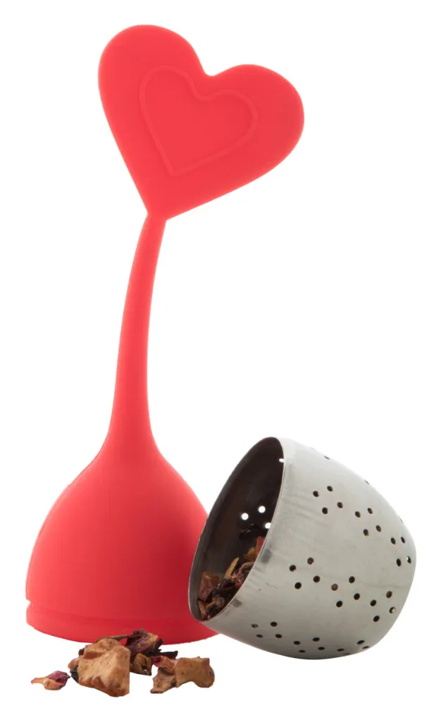 Infuzer za čaj izrađen od silikona i nehrđajućeg čelika u obliku srca i lista.
