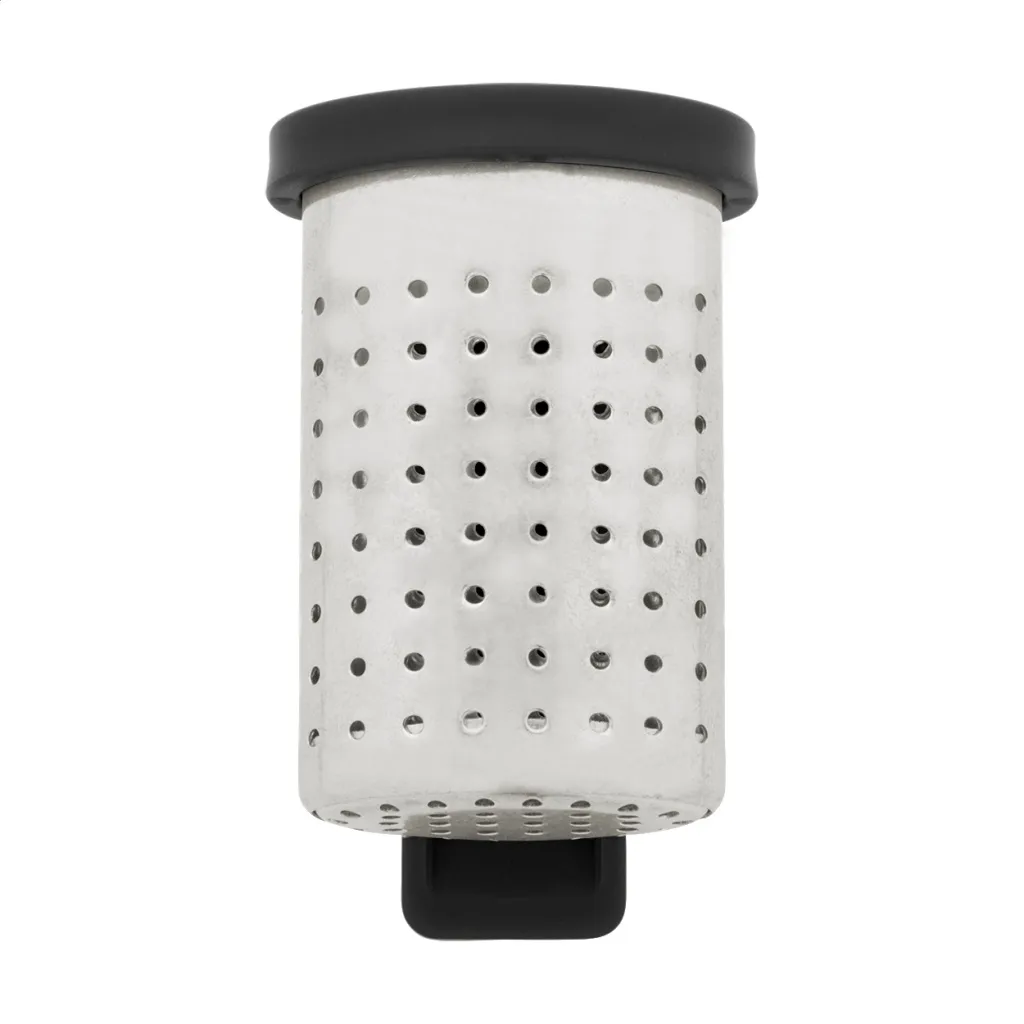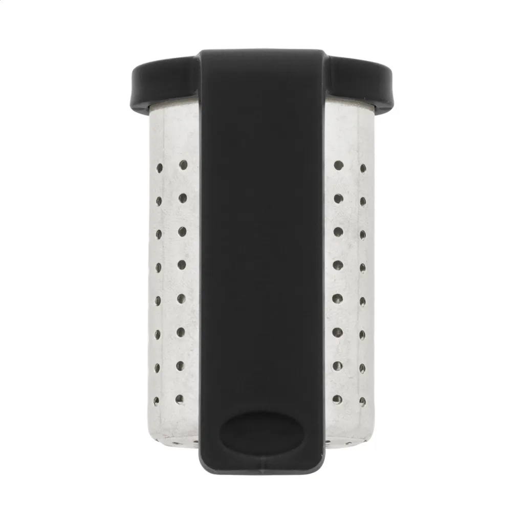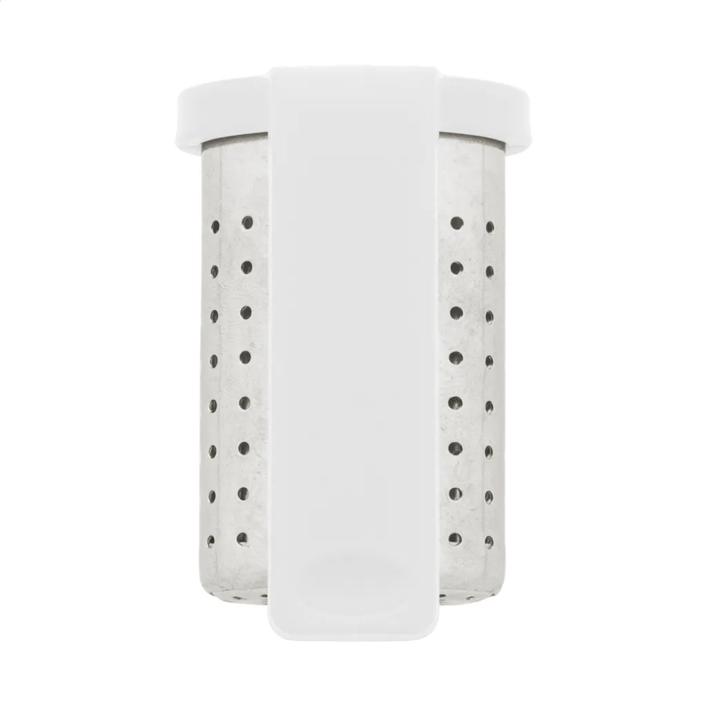 Infuzer za čaj od nehrđajućeg čelika s praktičnim držačem od recikliranog ABS-a. Dizajniran za jednostavno pričvršćivanje na rub šalice.