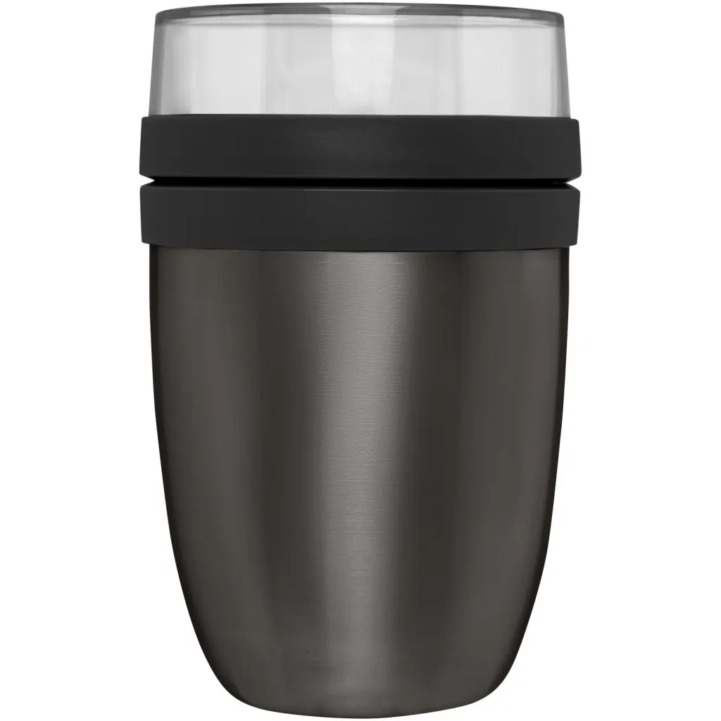 Izolirana posuda za ručak s dva različita pretinca kako bi se različiti sastojci odvojili. Oba spremnika imaju zaseban poklopac, tako da se sastojci ne miješaju. Održava hranu toplom 8 sati ili hladnom 12 sati. Kako biste osigurali da hrana ostane što dulje vruća ili hladna, preporučuje se ispiranje posude za ručak vrućom ili ledeno hladnom vodom prije punjenja. Sadržaj gornje prozirne posude je 200 ml, što znači da može primiti oko 75 grama krute hrane. Kapacitet donjeg spremnika je 500 ml. Izrađena od trajnog materijala, a vanjska strana lonca ostaje hladna i suha. Preporučuje se ručno pranje. Plastični dijelovi čepa mogu se staviti u perilicu posuđa. Nepropusno. Bez BPA.